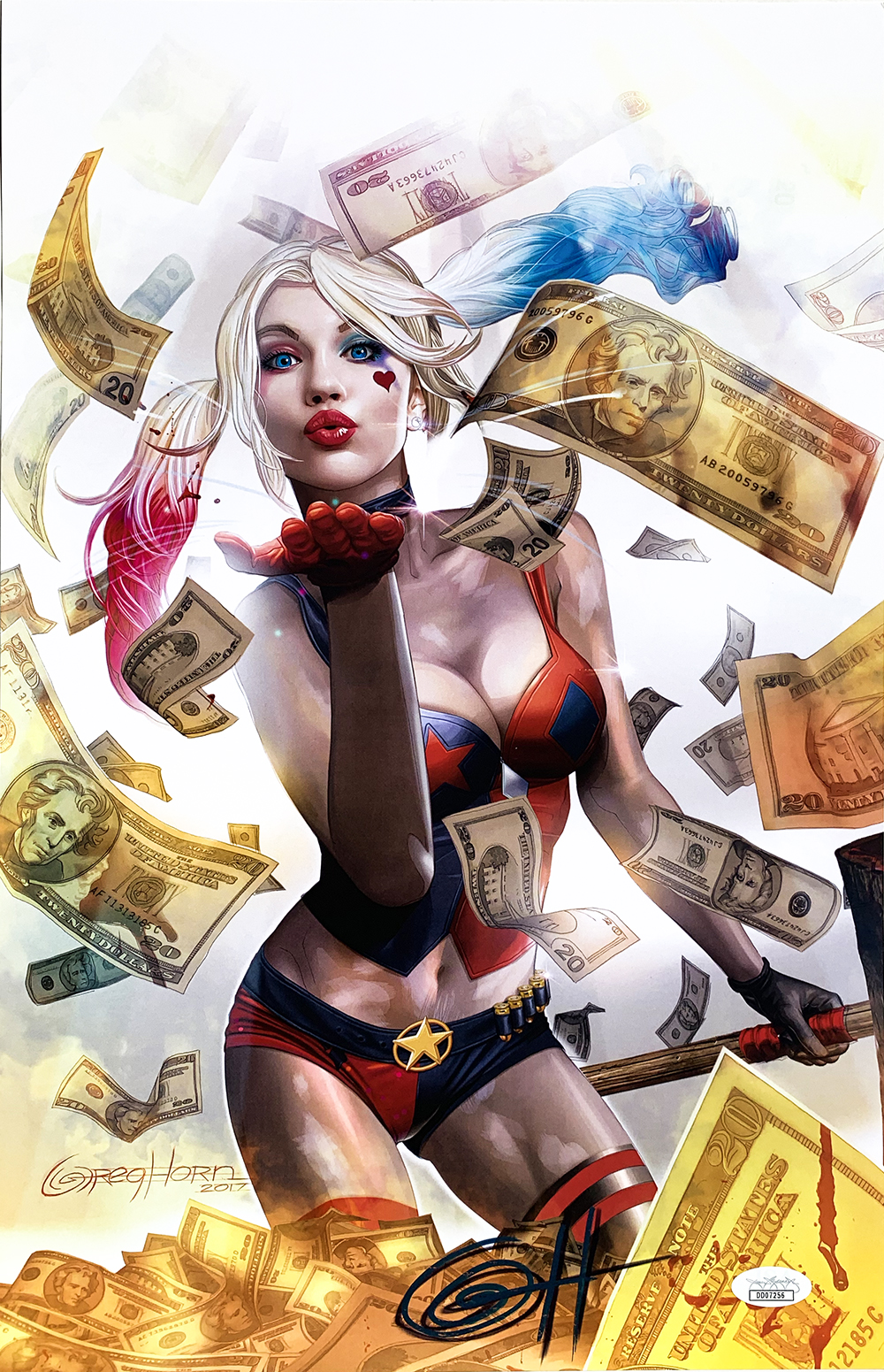 Greg Horn Signed "Harley Quinn: Blood Money Gold" 11x17 Lithograph (JSA COA)