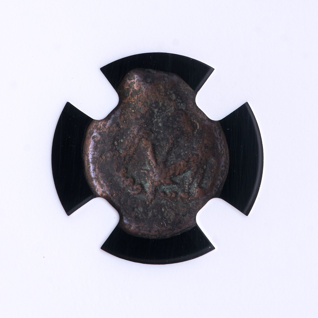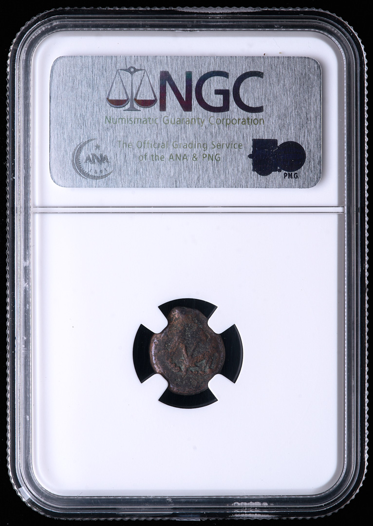 Very rare authentic bronze Mite coin. The coin has been authenticated and encapsulated by NGC (Numismatic Guaranty Corporation).