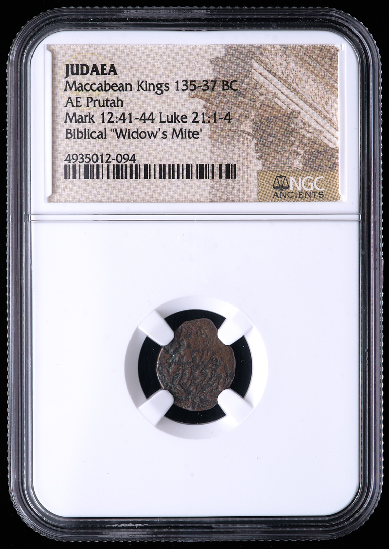 Biblical "Widow's Mite" 135-37 BC Judaean Prutah of the Maccabean Kings (NGC Certified)