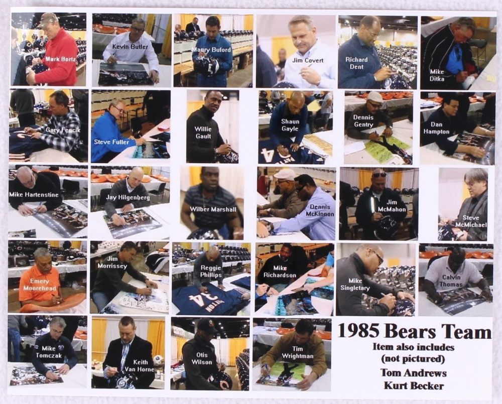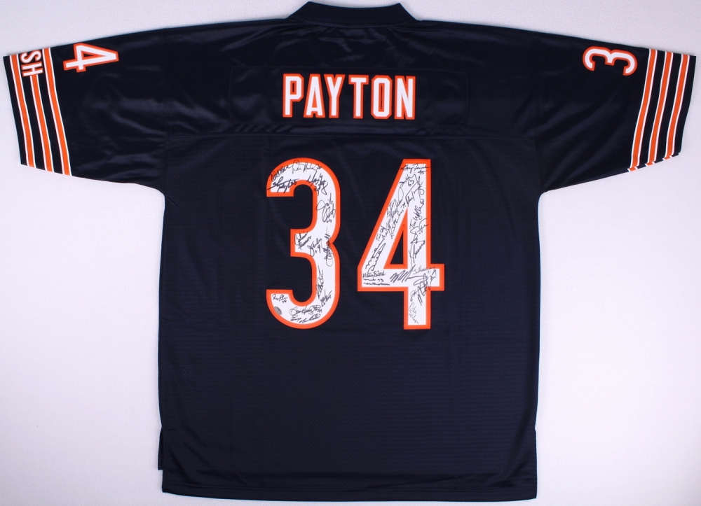 This is a 1985 Chicago Bears Team signed Walter Payton #34 Mitchell and Ness throwback jersey with 30 signatures. This jersey has been signed by 30 members of 1985 Chicago Bears team, they include; Mark Bortz, Kevin Butler, Maury Buford, Jim Covert, Richard Dent, Mike Ditka, Gary Fencik, Willie Gault, Shaun Gayle, Dennis Gentry, Dan Hampton, Mike Hartenstine, Jay Hilgenberg, Wilber Marshall, Dennis Mckinnon, Jim McMahon, Steve McMichael, Emery Moorehead, Jim Morrissey, Reggie Phillips, Mike Singletary, Calvin Thomas, Mike Tomczak, Keith Van Horne, Otis Wilson, Tim Wrightman, Tom Andrews Kurt Becker, Steve Fuller, and Mike Richardson. The autographs include an official Schwartz Sports Hologram and matching COA for authenticity purposes.