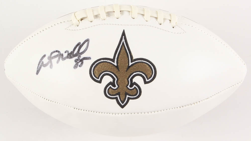 New Orleans Saints logo football. Hand-signed in black felt-tip pen by Wesley Walls.