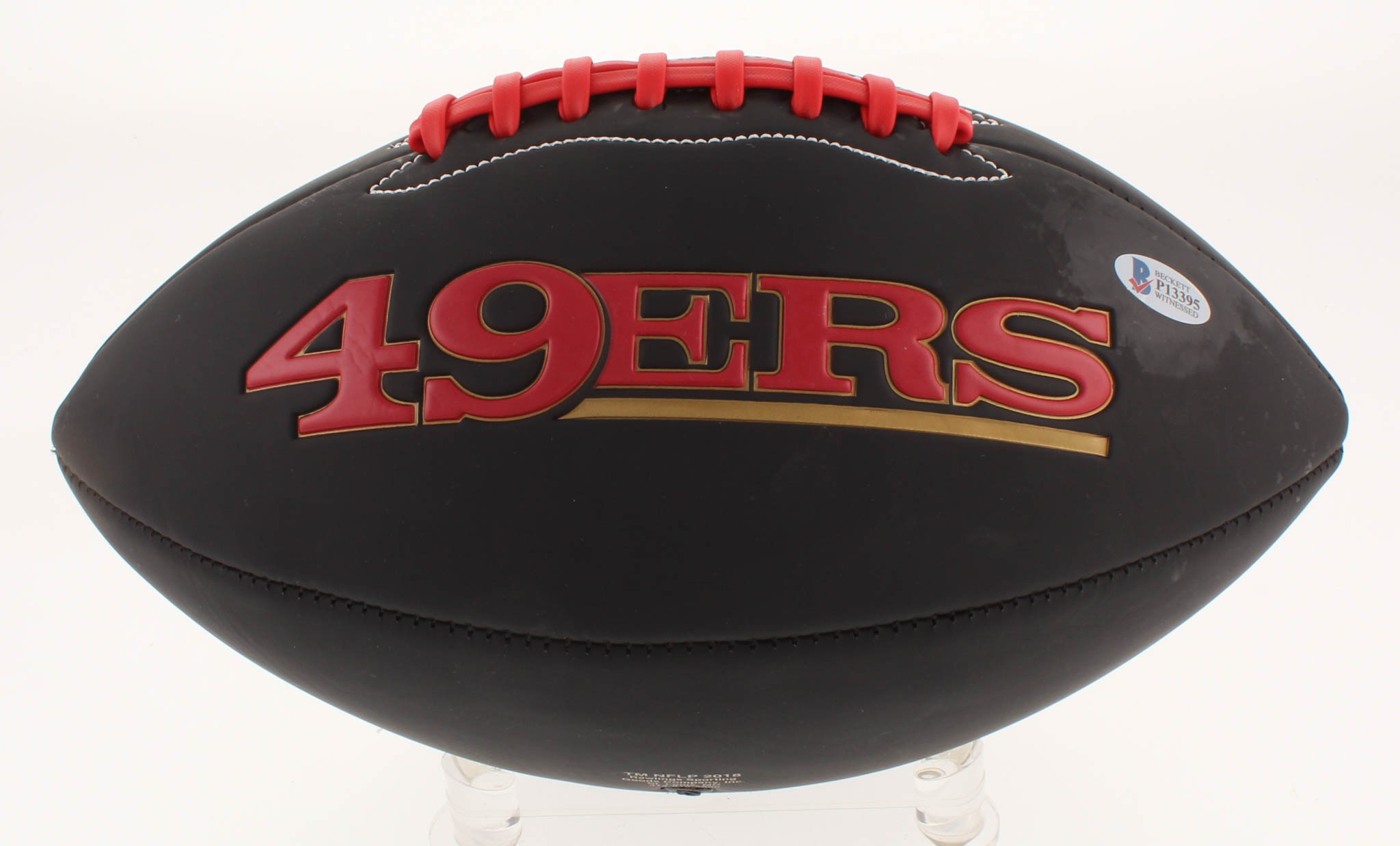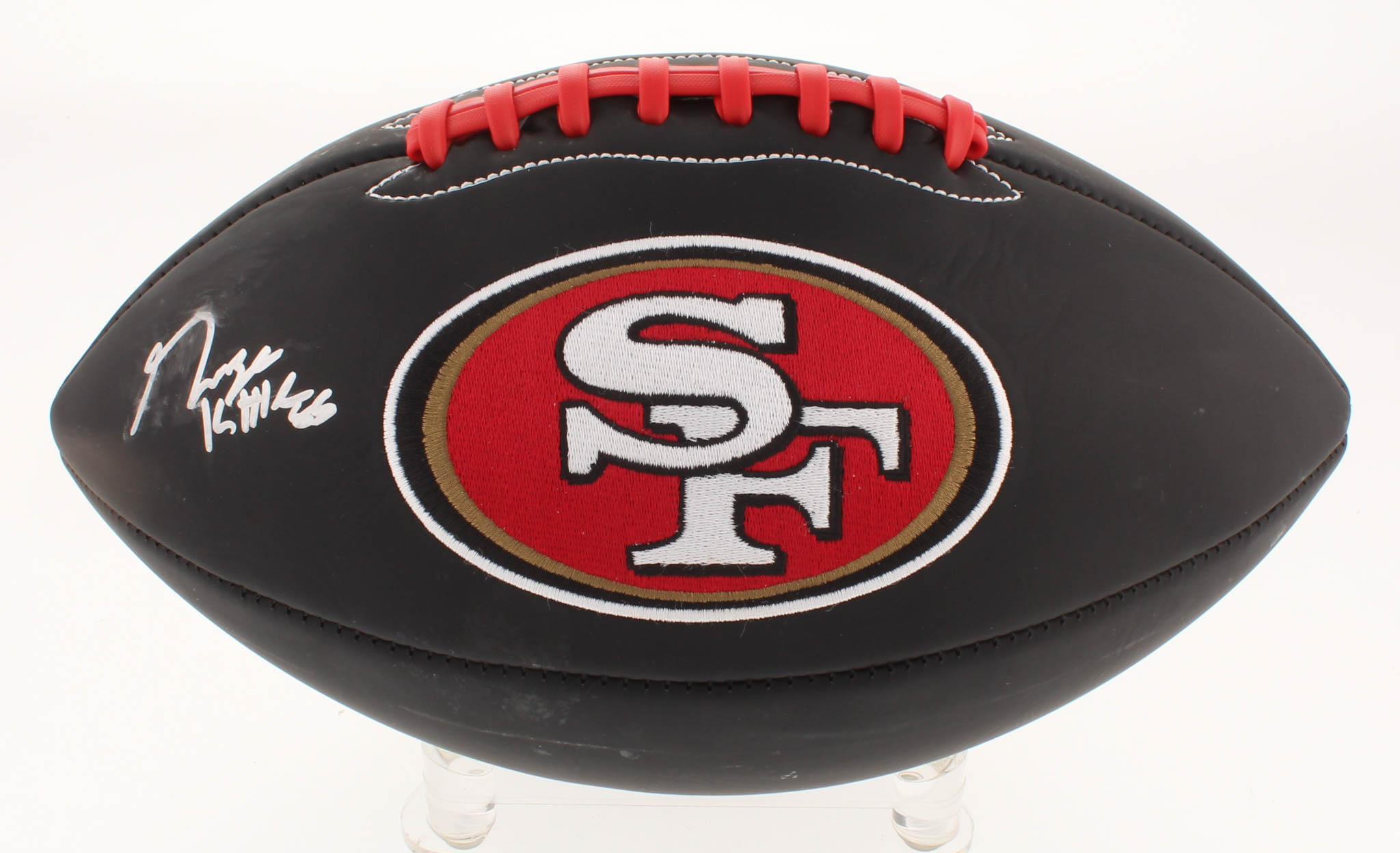 San Francisco 49ers logo football. Hand-signed in silver paint pen by George Kittle.