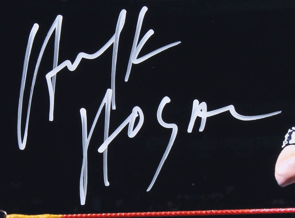 Photo measures 16" x 20" in size and has been hand-signed in white paint pen by Hulk Hogan (HOF).