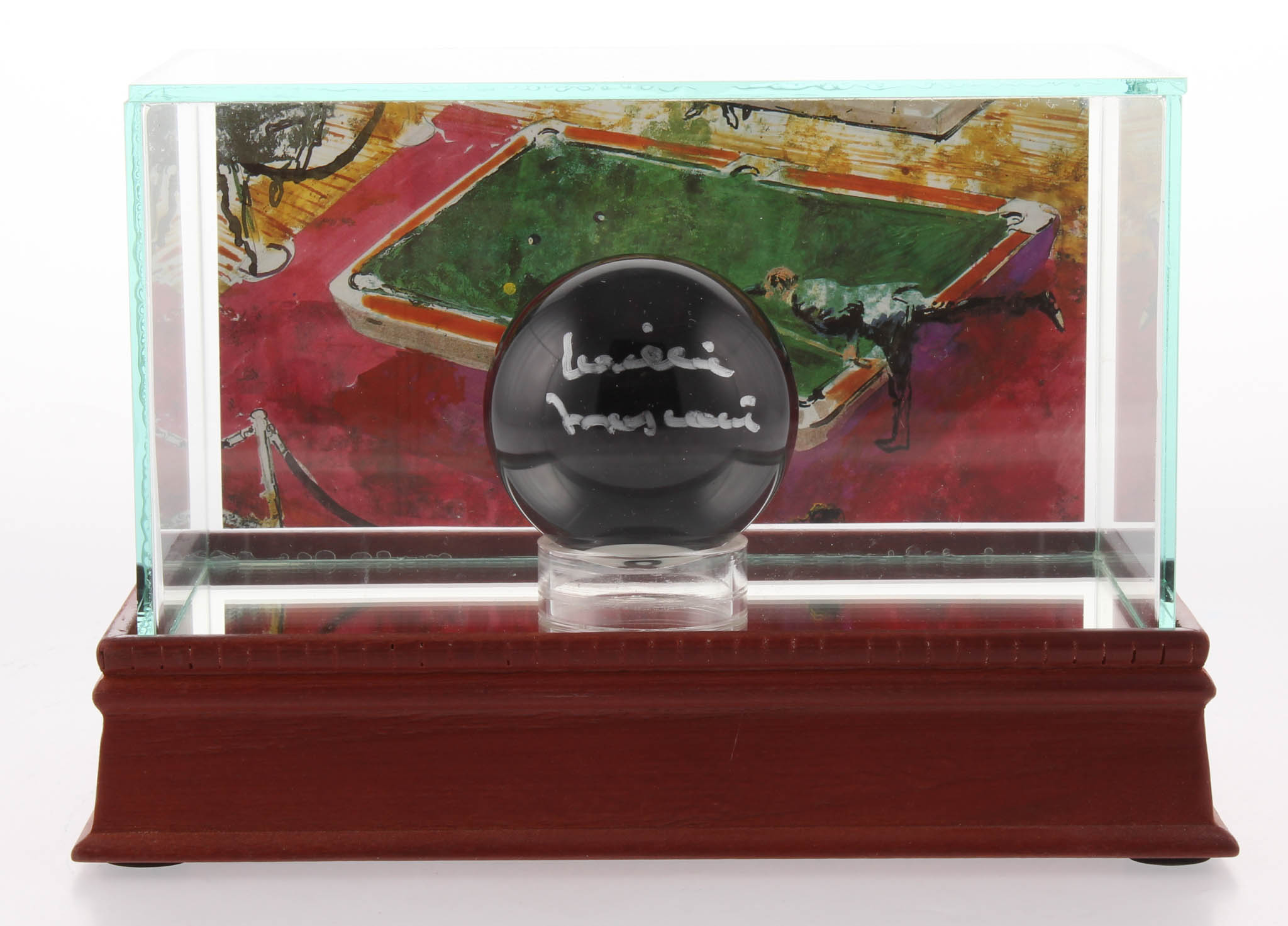 Willie Mosconi Signed #8 Pool Ball With LeRoy Neiman Art Display Case (PSA COA)