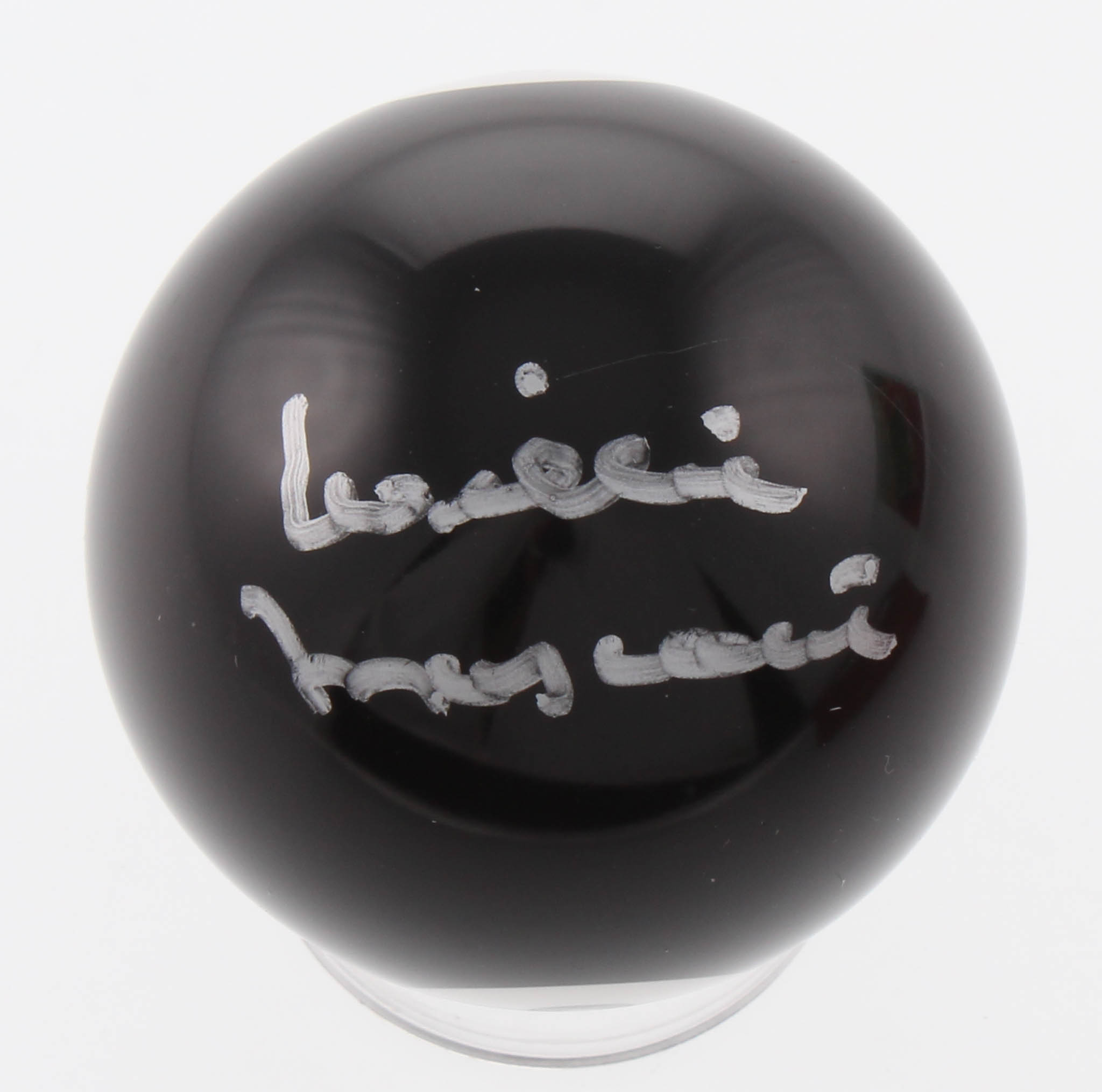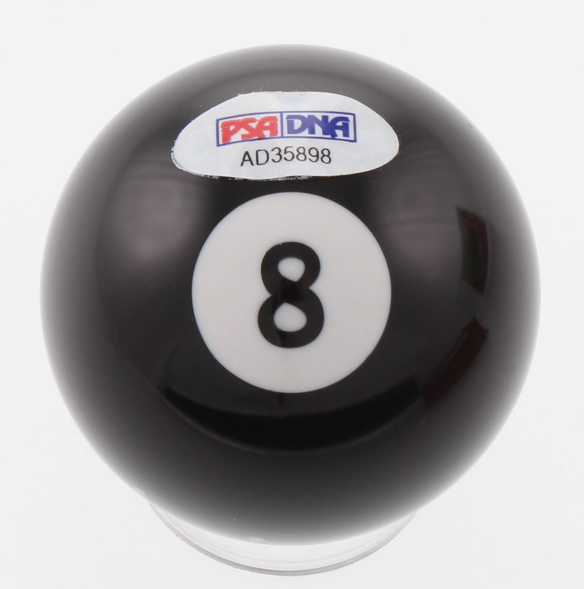 #8 Pool Ball. Ball has been hand-signed in silver paint pen by Willie Mosconi (D. 1993, HOF). Includes display case as shown.