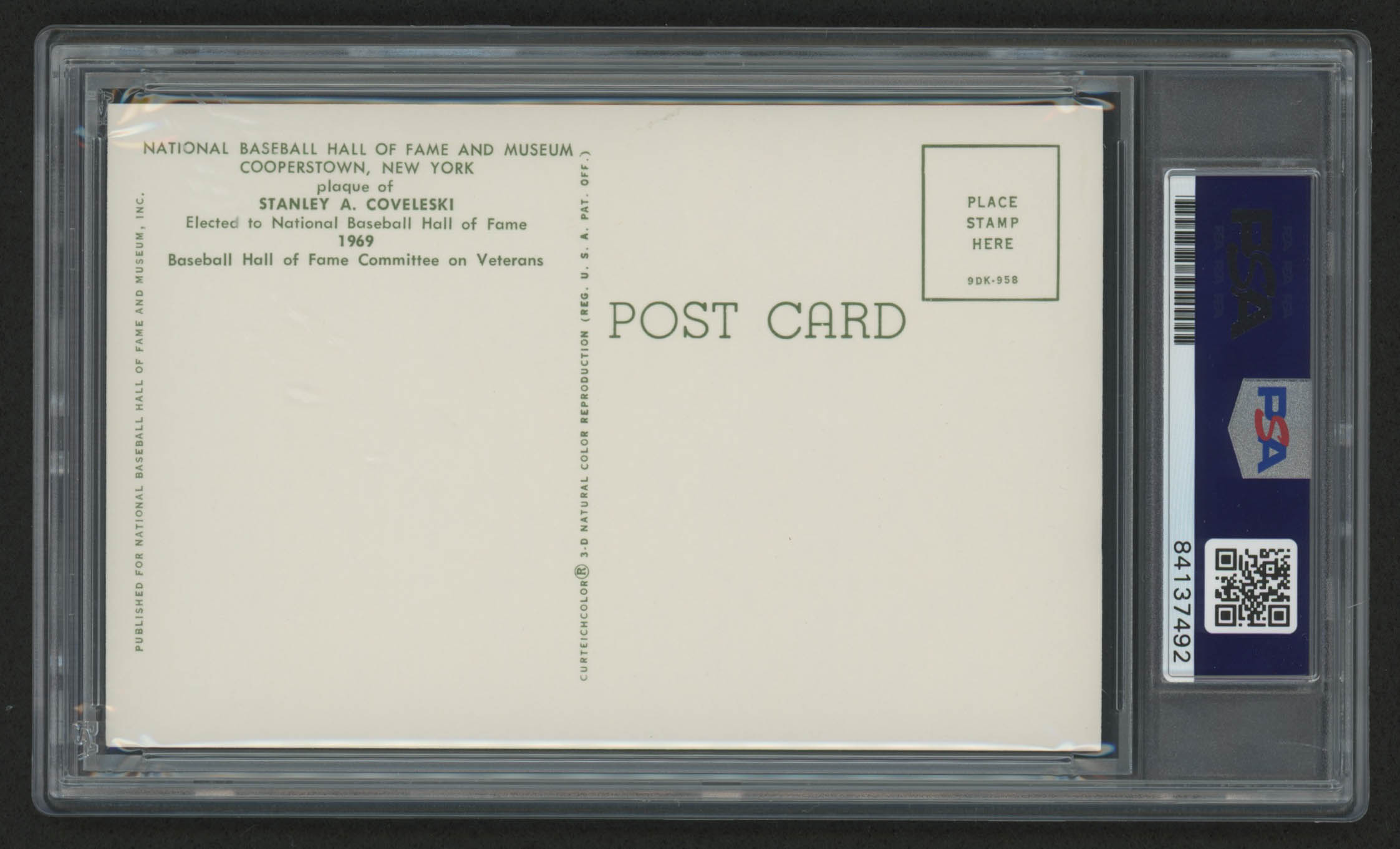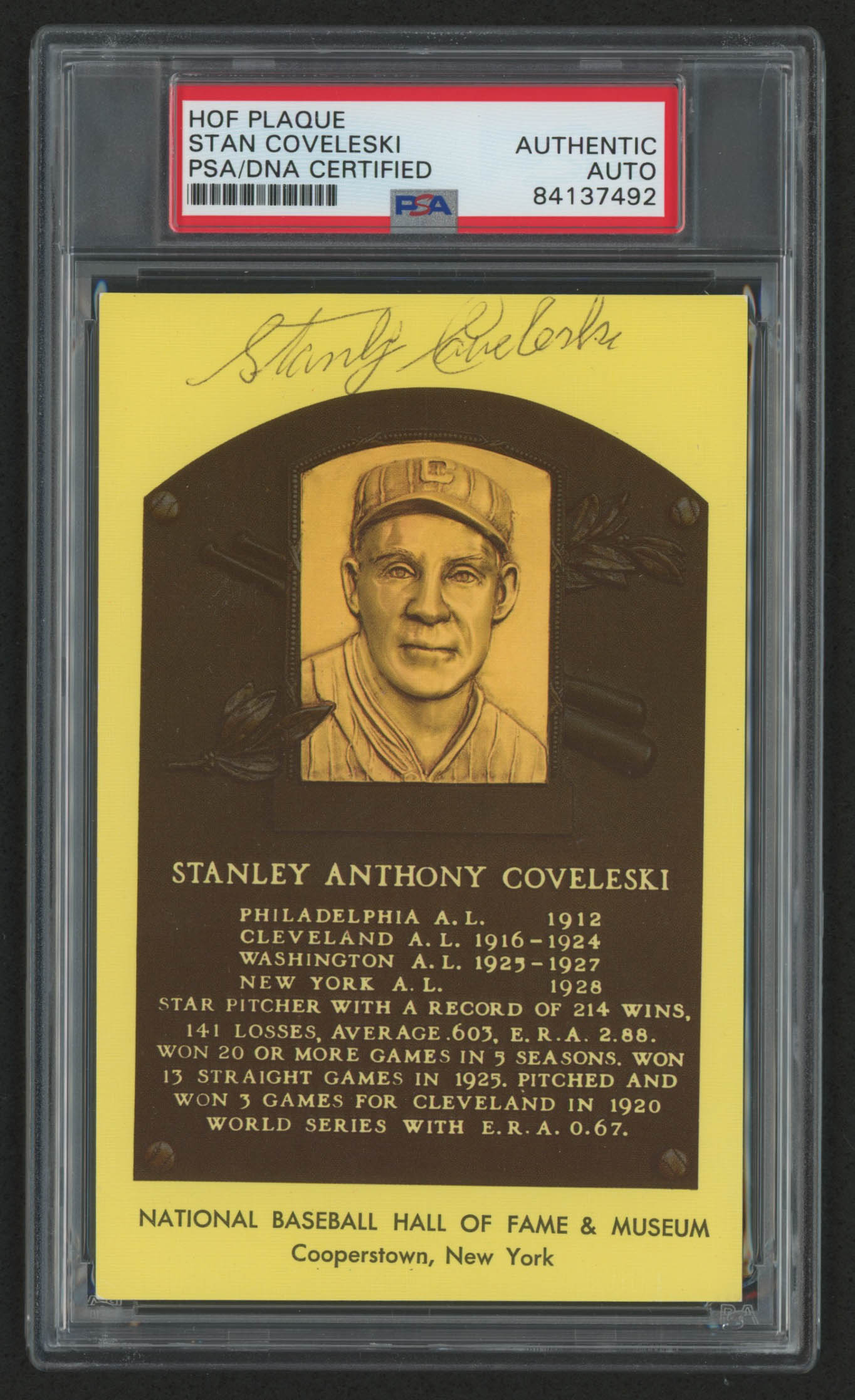 Stan Coveleski Signed Gold Hall of Fame Plaque Postcard (PSA Encapsulated)
