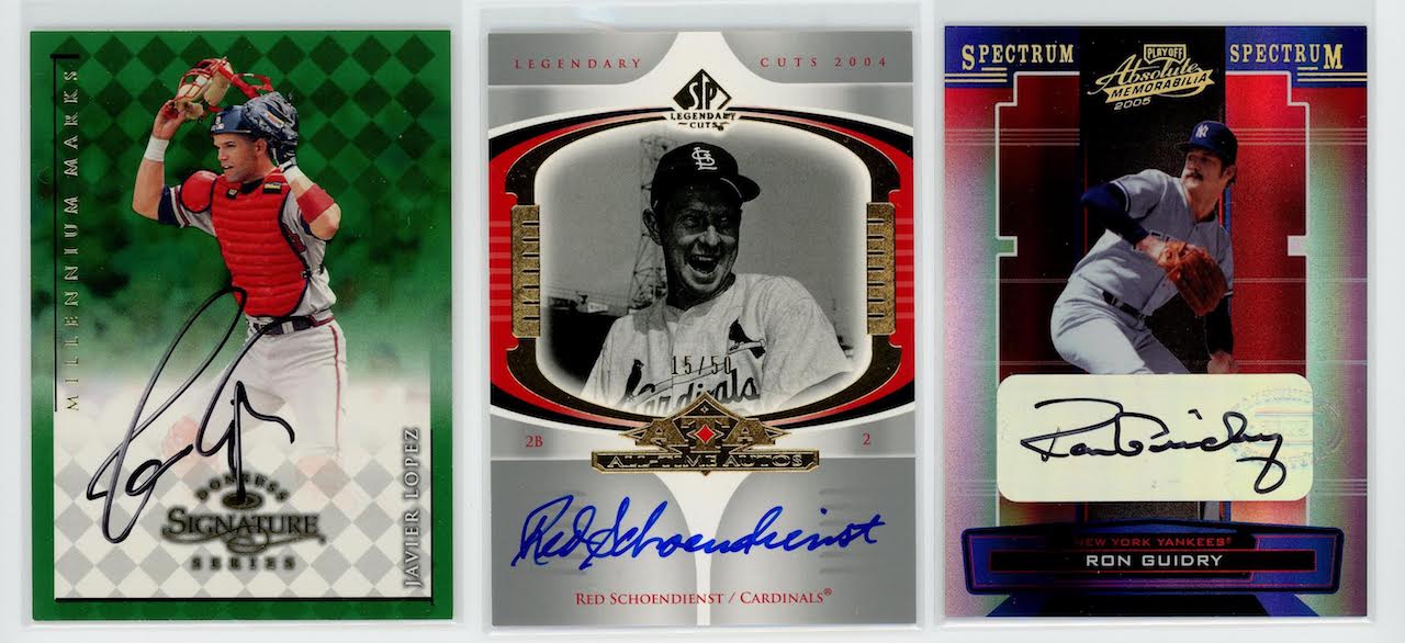 Low numbered autographs, dual autographs, triple autographs, autograph jerseys, autograph bats and more!