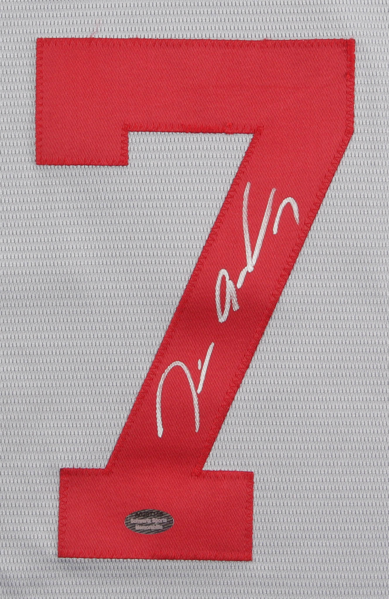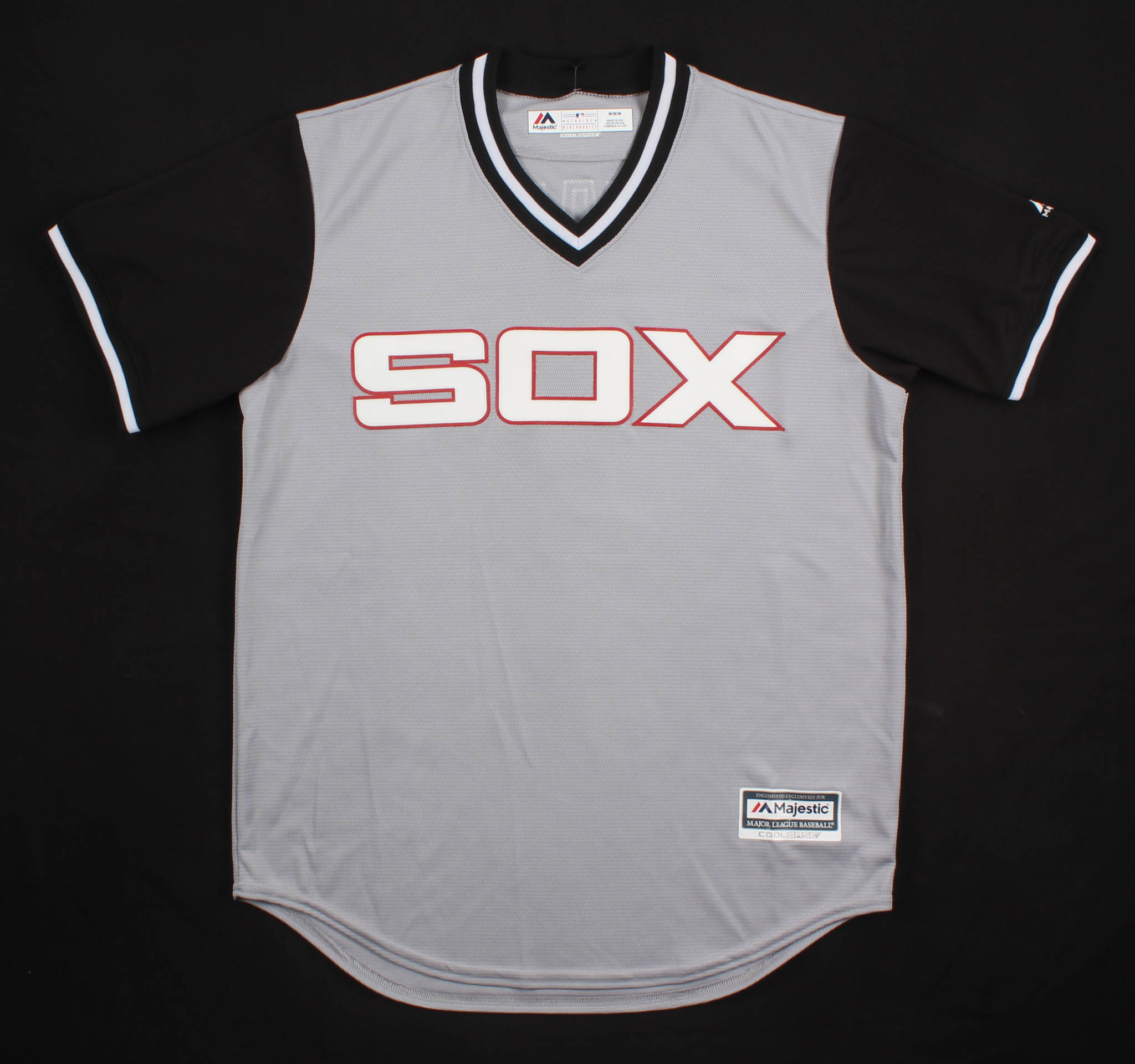 Majestic on-field style jersey. Everything is sewn on, size M. Hand-signed in silver paint pen by Tim Anderson.