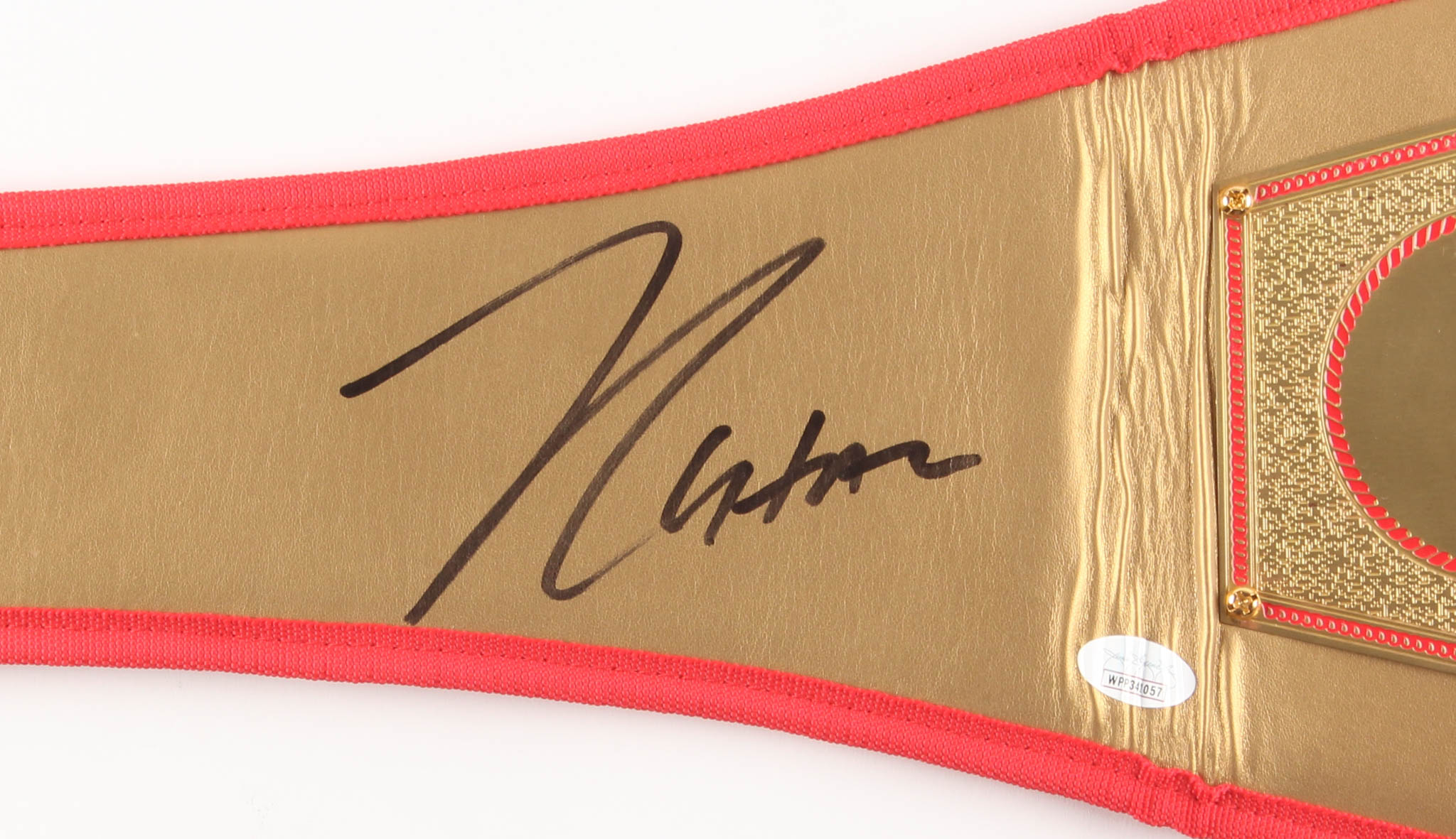 Full-size replica (plastic) belt measures approximately 53" in length and has been hand-signed in blue felt-tip pen by Julio Cesar Chavez. Belt includes the carrying case shown.