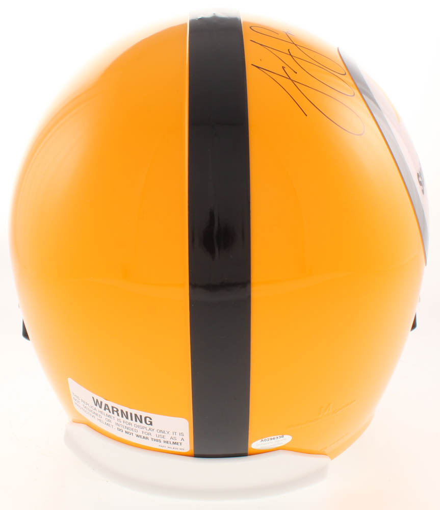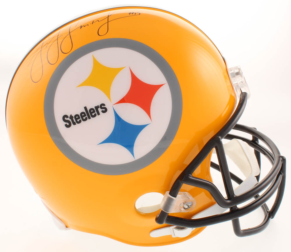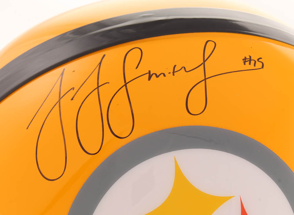 Riddell Pittsburgh Steelers full-size 75th-anniversary replica helmet. Hand-signed in black felt-tip pen by JuJu Smith-Schuster.