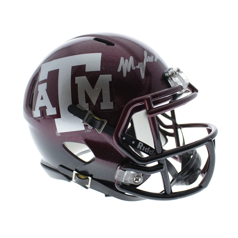 Riddell Texas A&M Aggies speed mini helmet has been hand-signed in silver paint pen by Myles Garrett (Cleveland Browns).