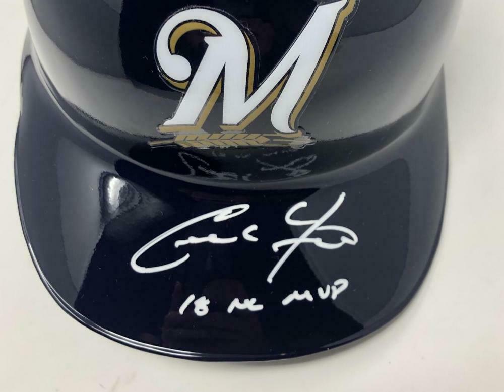 Christian Yelich Signed Brewers Full-Size Batting Helmet Inscribed "18 NL MVP" (Steiner Hologram)