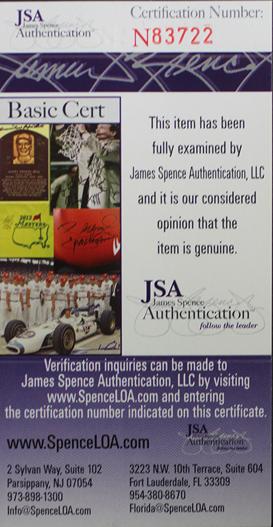 The lot / autograph(s) includes an official James Spence Authentication (JSA) hologram and matching COA for authenticity purposes.