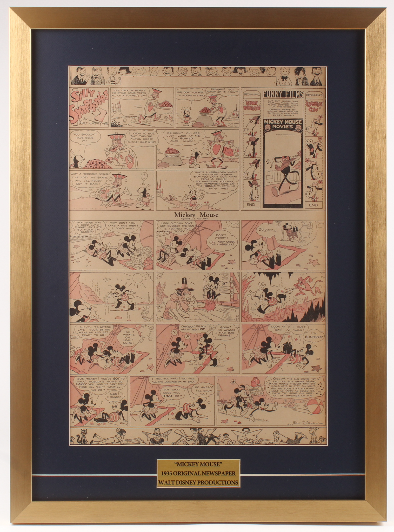 Custom frame measures 20.5" x 28" in size and features an original "Silly Symphonies" disney comic strip.