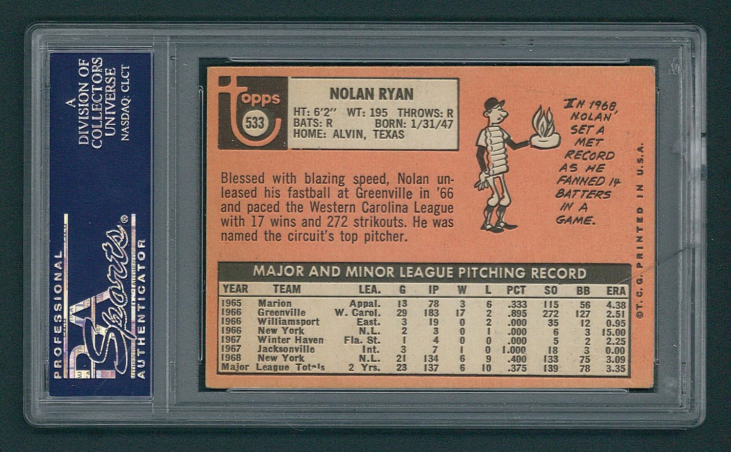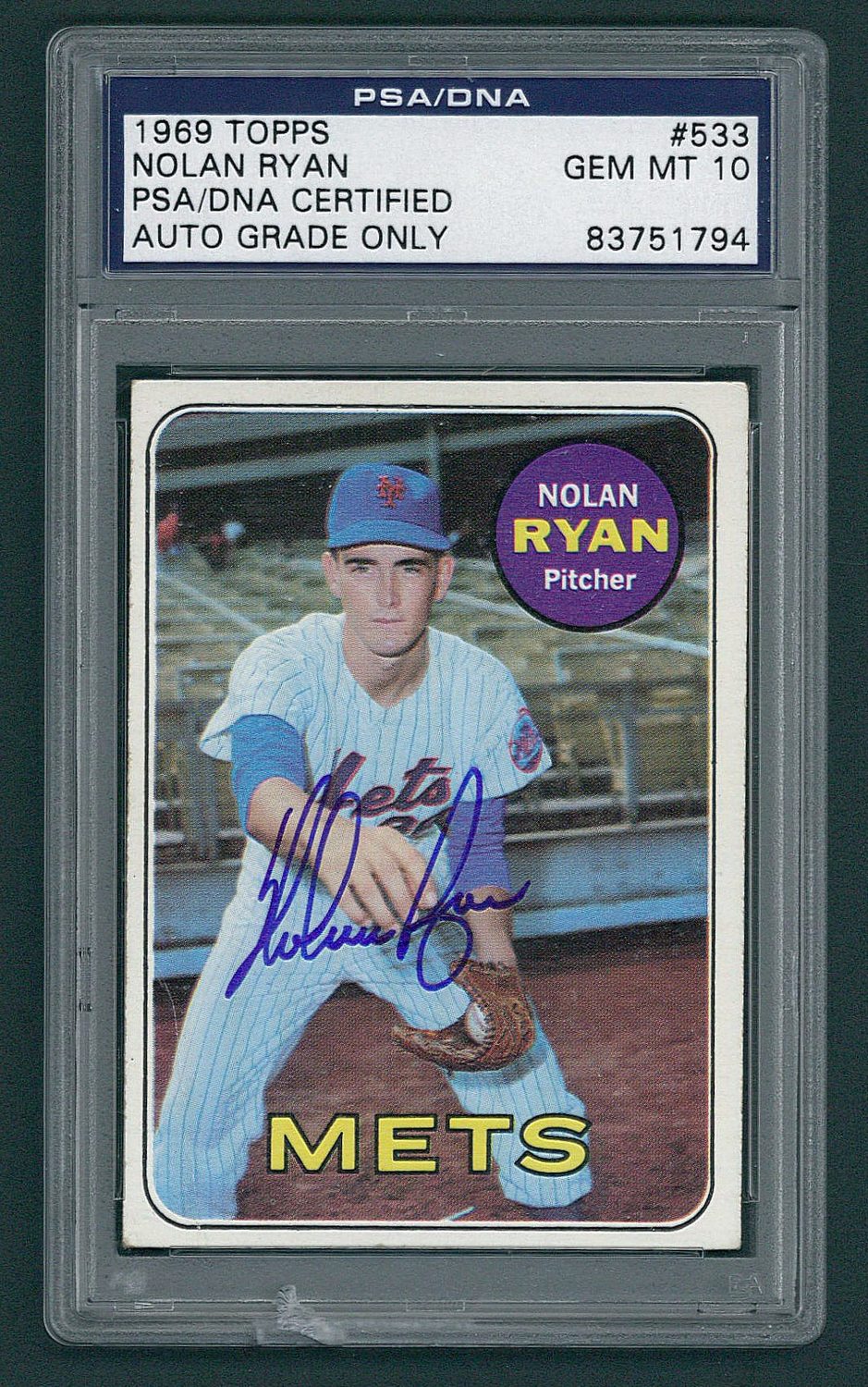 Nolan Ryan Signed Mets 1969 Topps #533 Baseball Card (PSA 10)