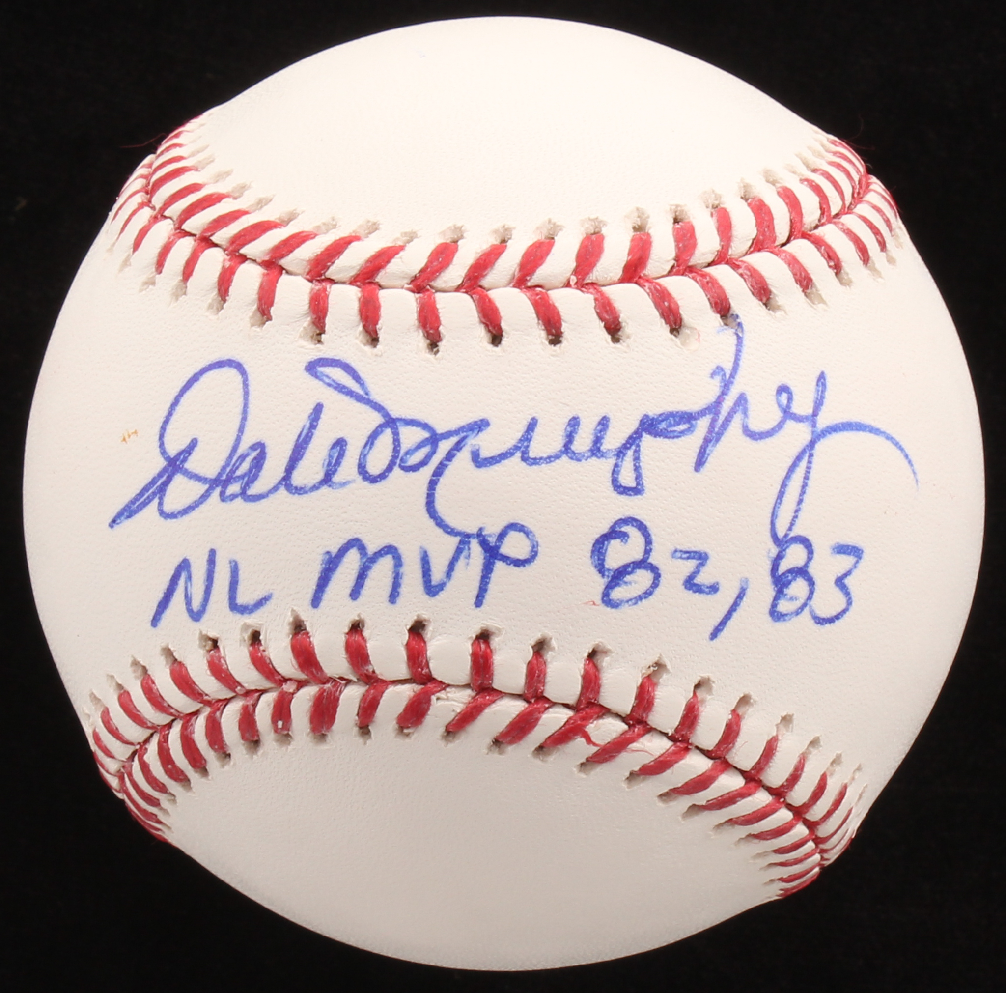 Rawlings Official Major League Baseball. Has been hand-signed in blue ink pen by Dale Murphy (Atlanta Braves).