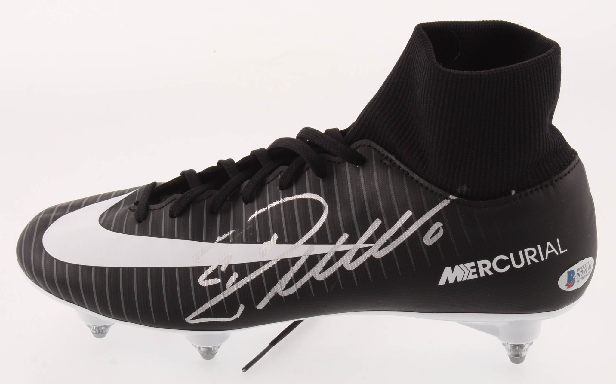 Nike Mercurial soccer left cleat, size 7. Hand-signed in silver paint pen by Cristiano Ronaldo (Juventus).