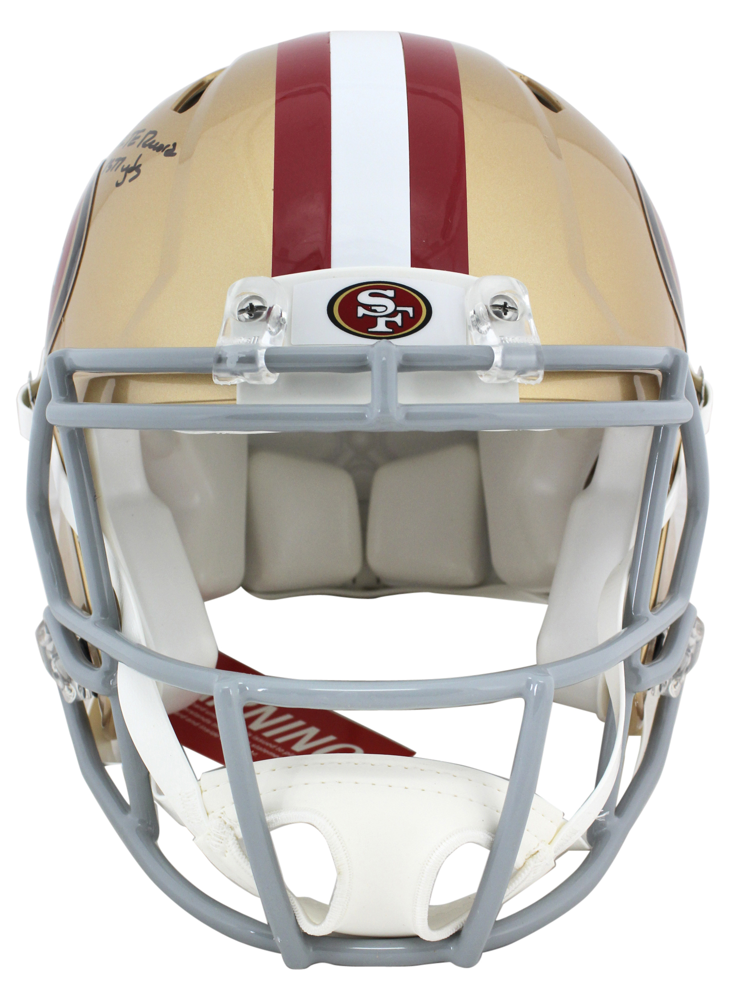 Riddell San Francisco 49ers full-size authentic on-field Speed helmet. Hand-signed and inscribed in black felt-tip pen by George Kittle.