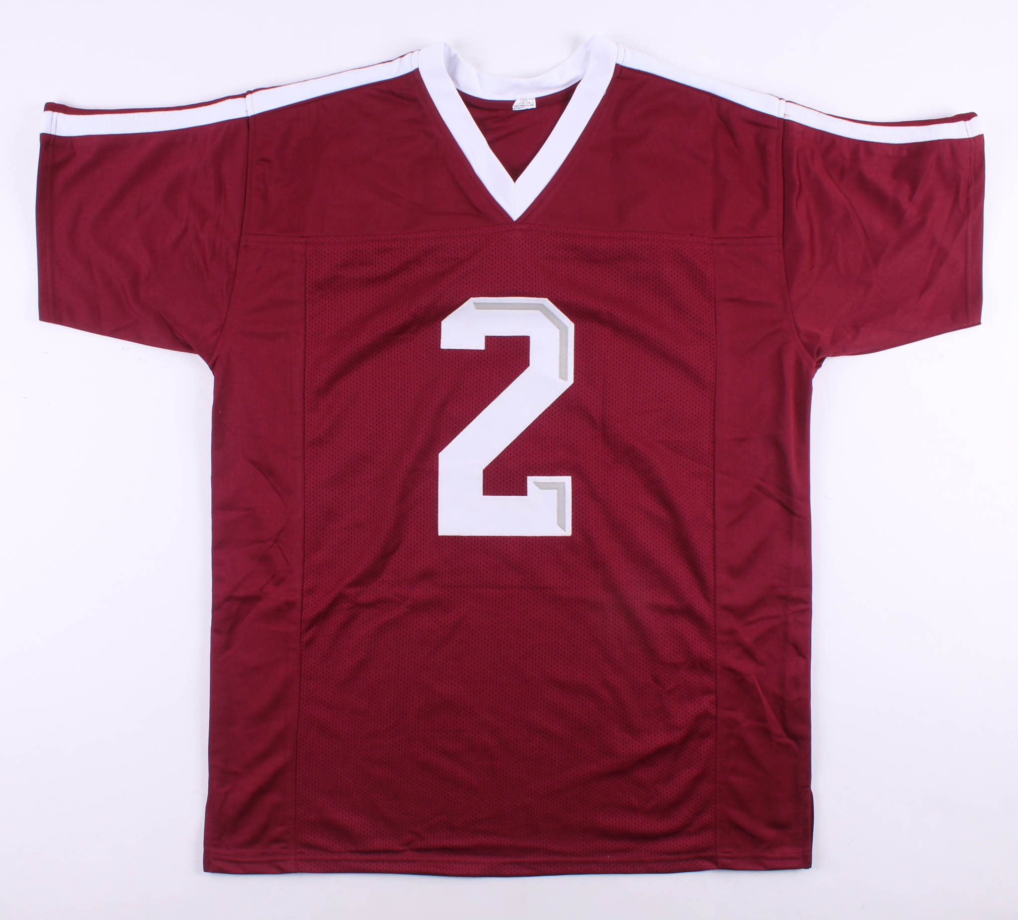 Custom on-field style jersey. Everything is sewn on, size XL. Hand-signed in black felt-tip pen by Johnny Manziel.