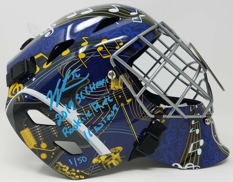 This goalie mask has been personally hand-signed by Jordan Binnington. Binnington added the limited edition inscription "2019 SC Champs" & "Rookie Rec 16 Wins." It is officially licensed by the National Hockey League and comes with an individually numbered, tamper-evident hologram from Fanatics Authentic. To ensure authenticity, the hologram can be reviewed online. This process helps to ensure that the product purchased is authentic and eliminates any possibility of duplication or fraud. This mask is limited to only 50 and you will receive a random number from the edition. Made in the USA. Personally Autographed by Jordan Binnington. Fanatics Authentic Presented by Mounted Memories. Includes tamper-evident hologram to ensure authenticity. Officially licensed. Please note that these were signed two days after the final game of the Stanley Cup and are being shipped to us as we speak. First come, first serve. This product is guaranteed authentic and includes a tamper-evident Fanatics Hologram.
