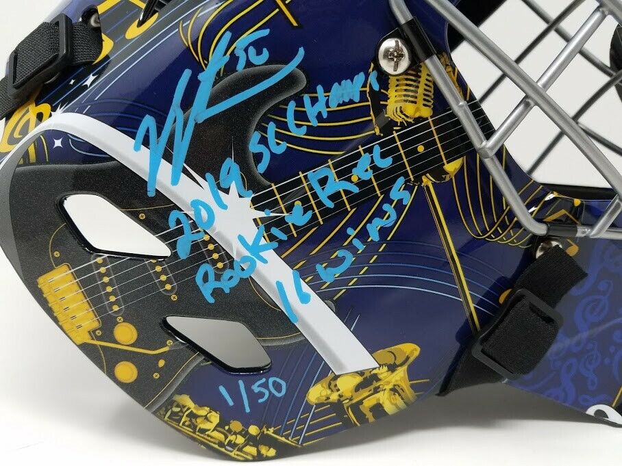 Jordan Binnington Signed St. Louis Blues LE Full-Size Goalie Mask Inscribed "2019 SC Champs" & "Rookie Rec 16 Wins" (Fanatics Hologram)