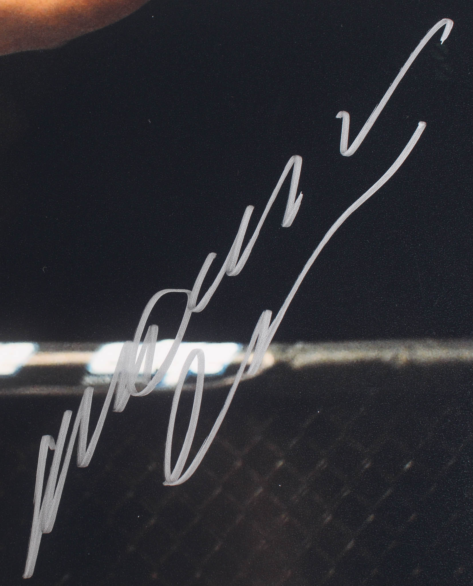 Photo measures 16" x 20" in size and has been hand-signed in silver paint pen by Anderson Silva.