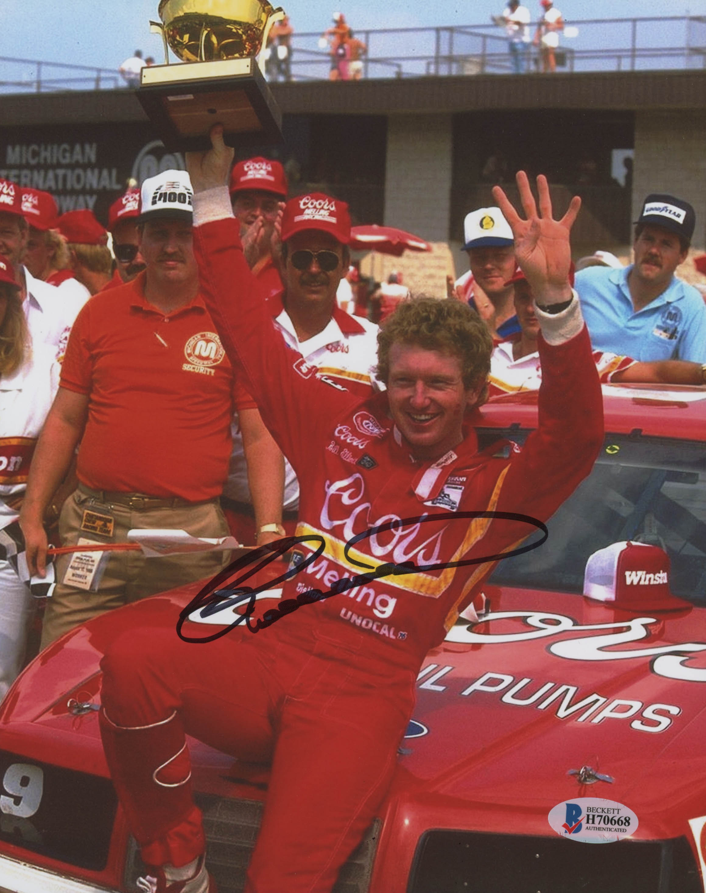 Photo measures 8" x 10" in size and has been hand-signed in black felt-tip pen by Bill Elliott (HOF).