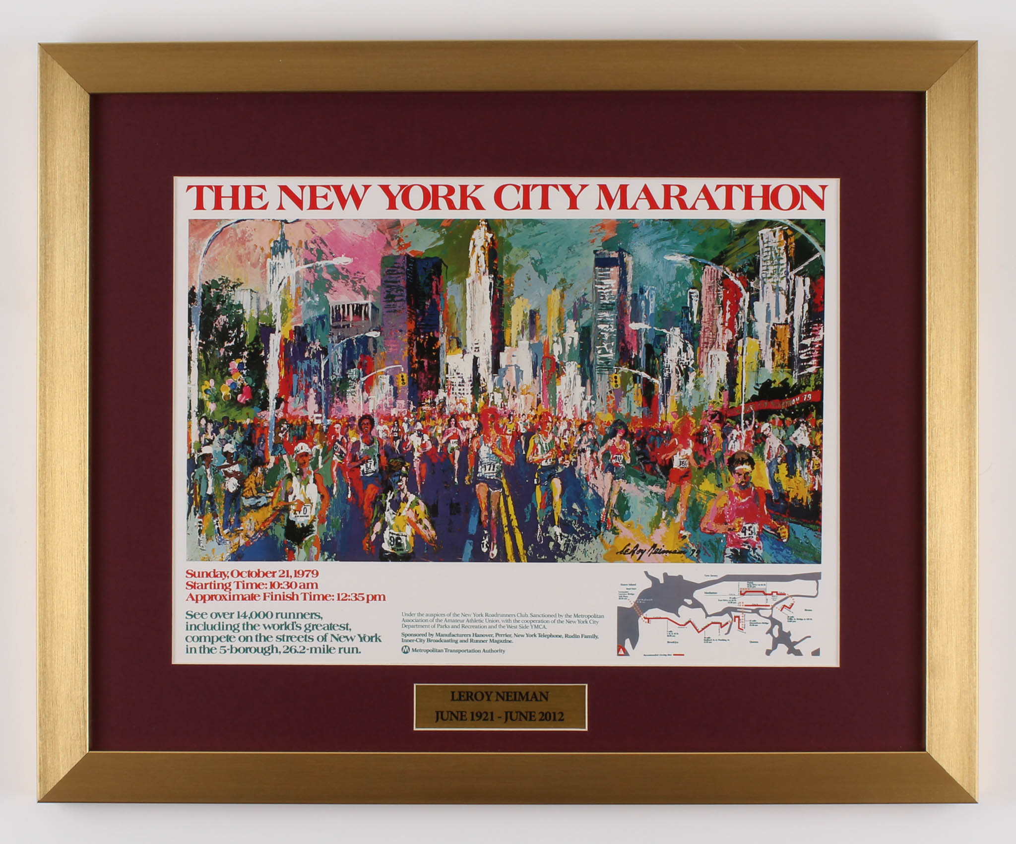 Custom framed display measures 17" x 21" in size and features a print of LeRoy Neiman's "The New York City Marathon".