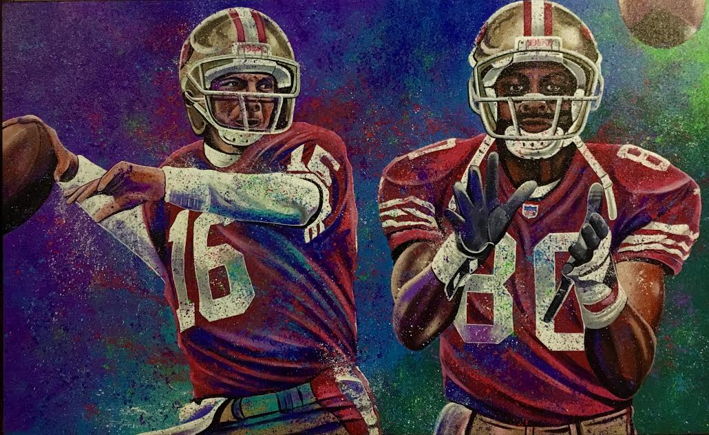 Bill Lopa Signed "Joe Montana & Jerry Rice" Limited Edition 27x30 Hand-Embellished Giclee on Canvas (PA LOA)