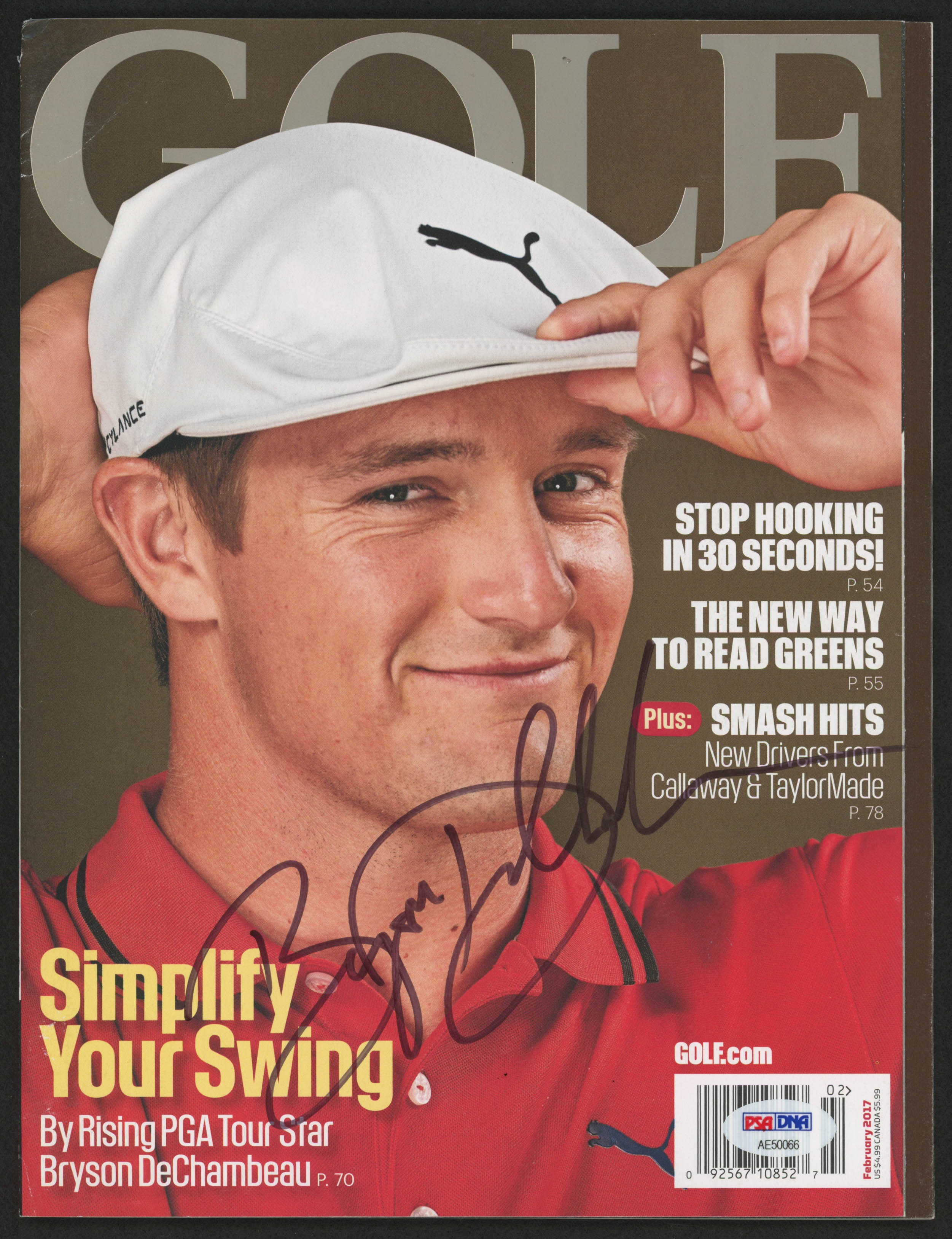 February 2017 Golf Magazine measures 8.5" x 11" in size and has been hand-signed in black felt-tip pen by Bryson DeChambeau.