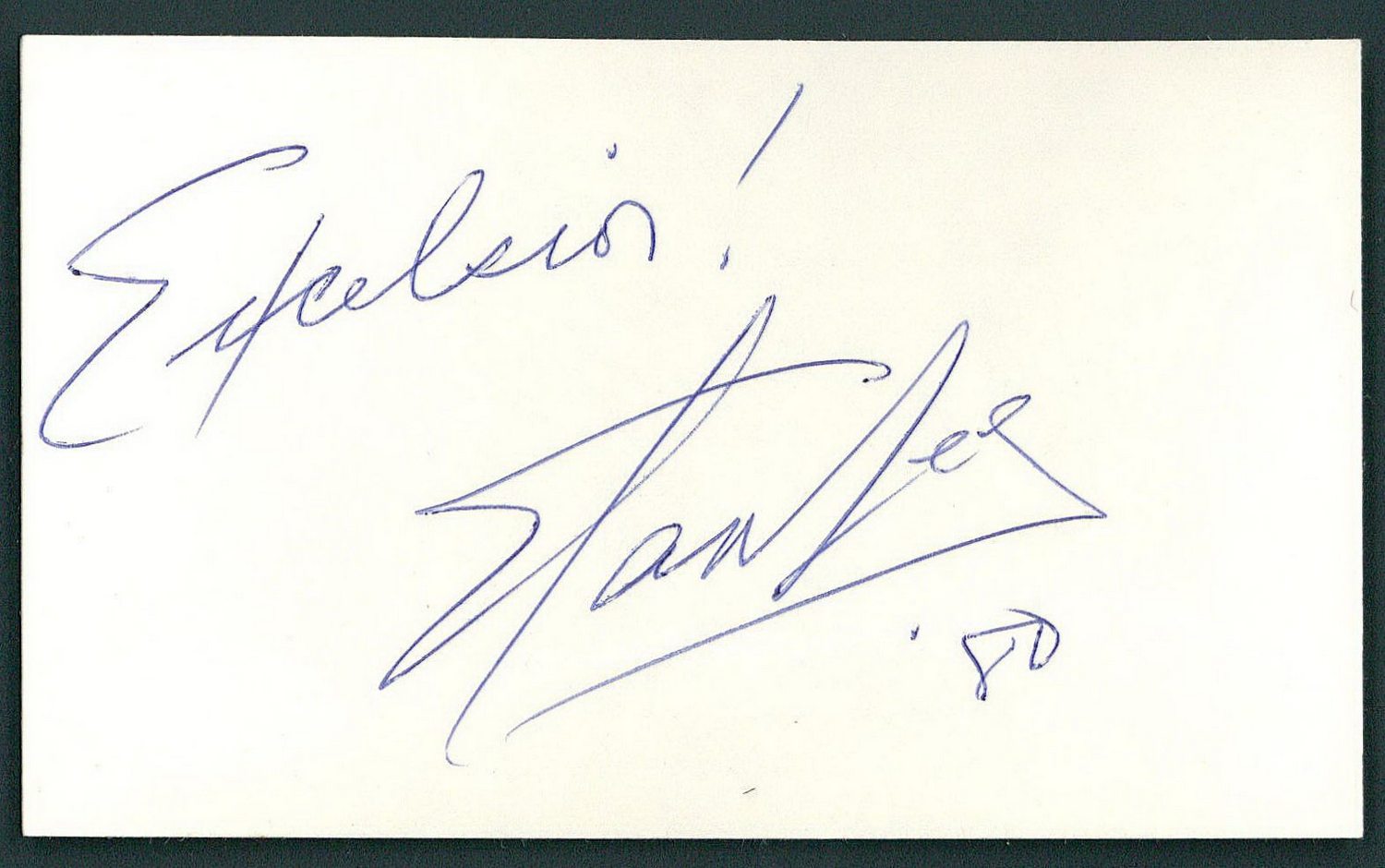 Cut measures 3 " x 5 " in size and has been hand-signed in blue ink pen by Stan Lee. The autograph includes an official James Spence Authentication (JSA) hologram and matching COA for authenticity purposes.