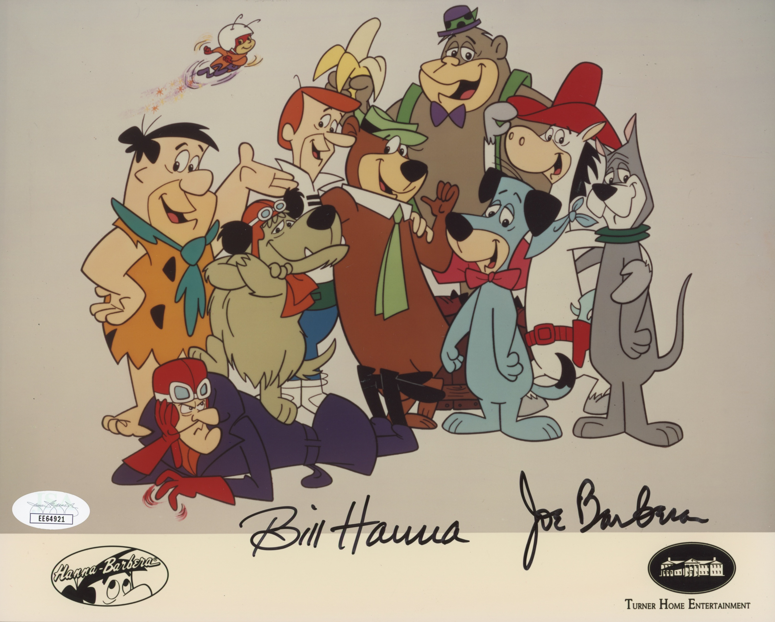 Photo measures 8" x 10" in size and has been hand-signed in black felt-tip pen by William Hanna (D. 2001) & Joseph Barbera (D. 2006)