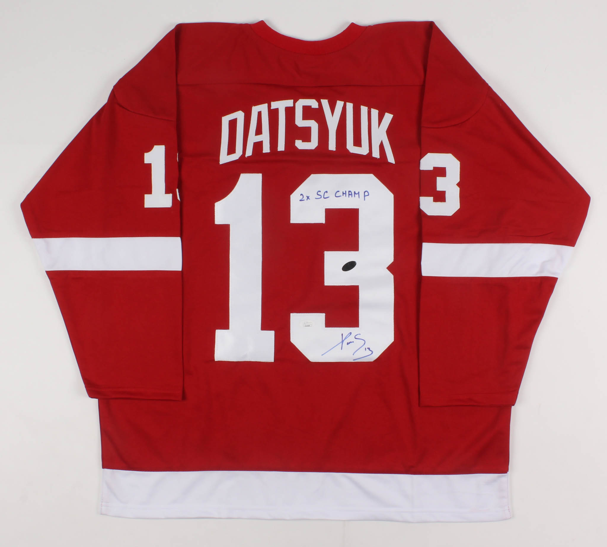 Pavel Datsyuk Signed Jersey Inscribed "2x SC Champ" (JSA COA)