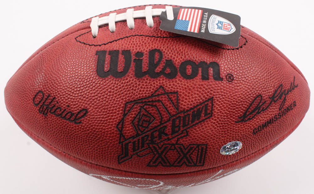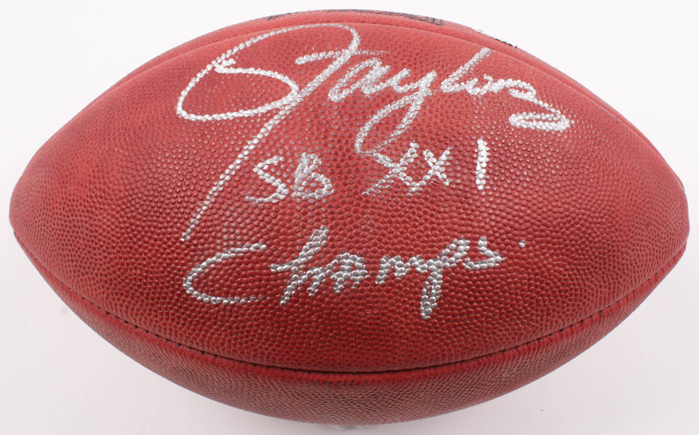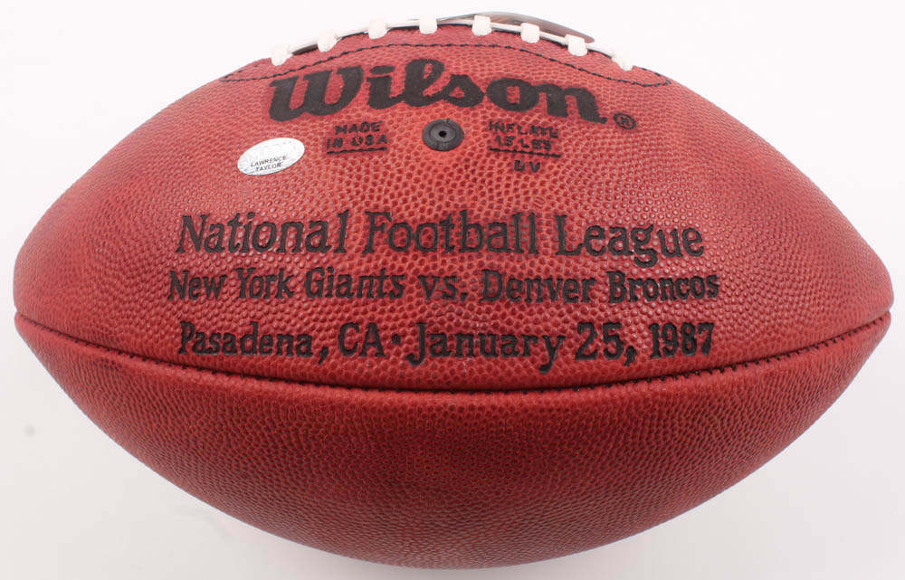 Wilson NFL Official Super Bowl XXI Game Ball. Hand-signed in silver paint pen by Lawrence Taylor (New York Giants, HOF).