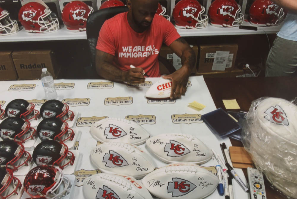 Kansas City Chiefs logo football. Hand-signed in black felt-tip pen by Dante Hall.