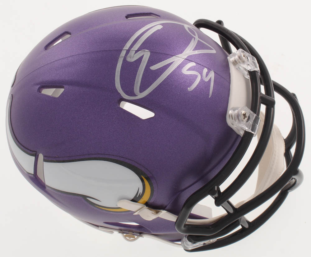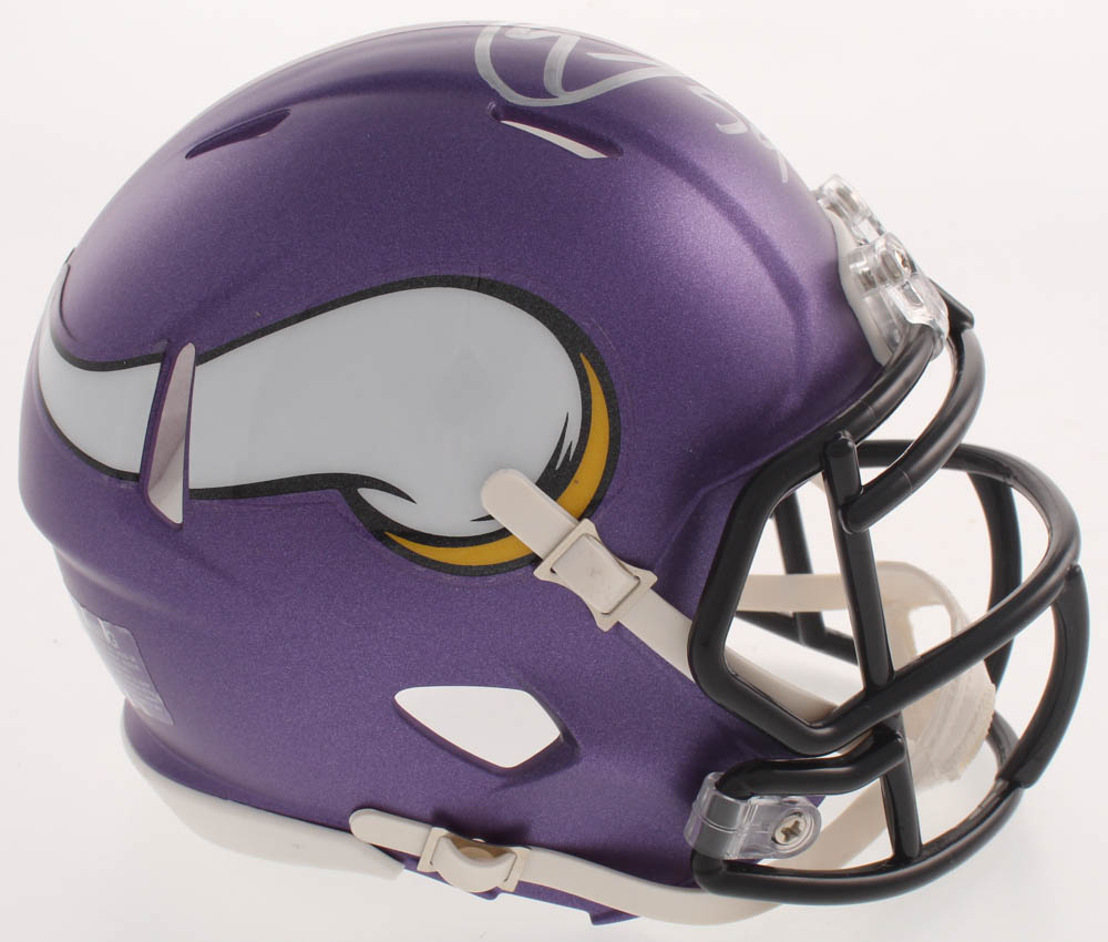 Minnesota Vikings mini speed helmet. Hand-signed in silver paint pen by Eric Kendricks.