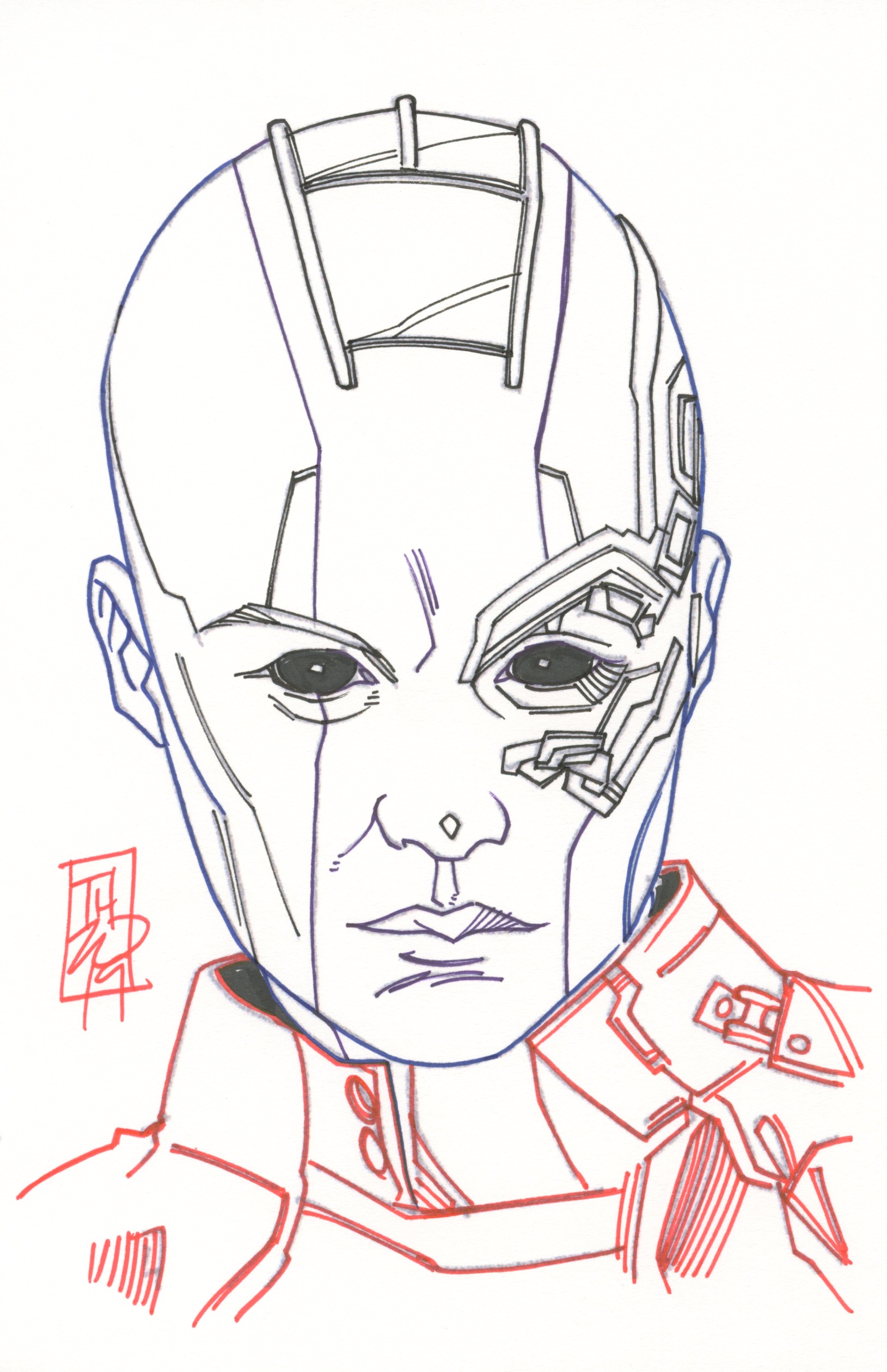 Tom Hodges - Nebula - Marvel - Signed ORIGINAL 5.5" x 8.5" Color Drawing on Paper (1/1)