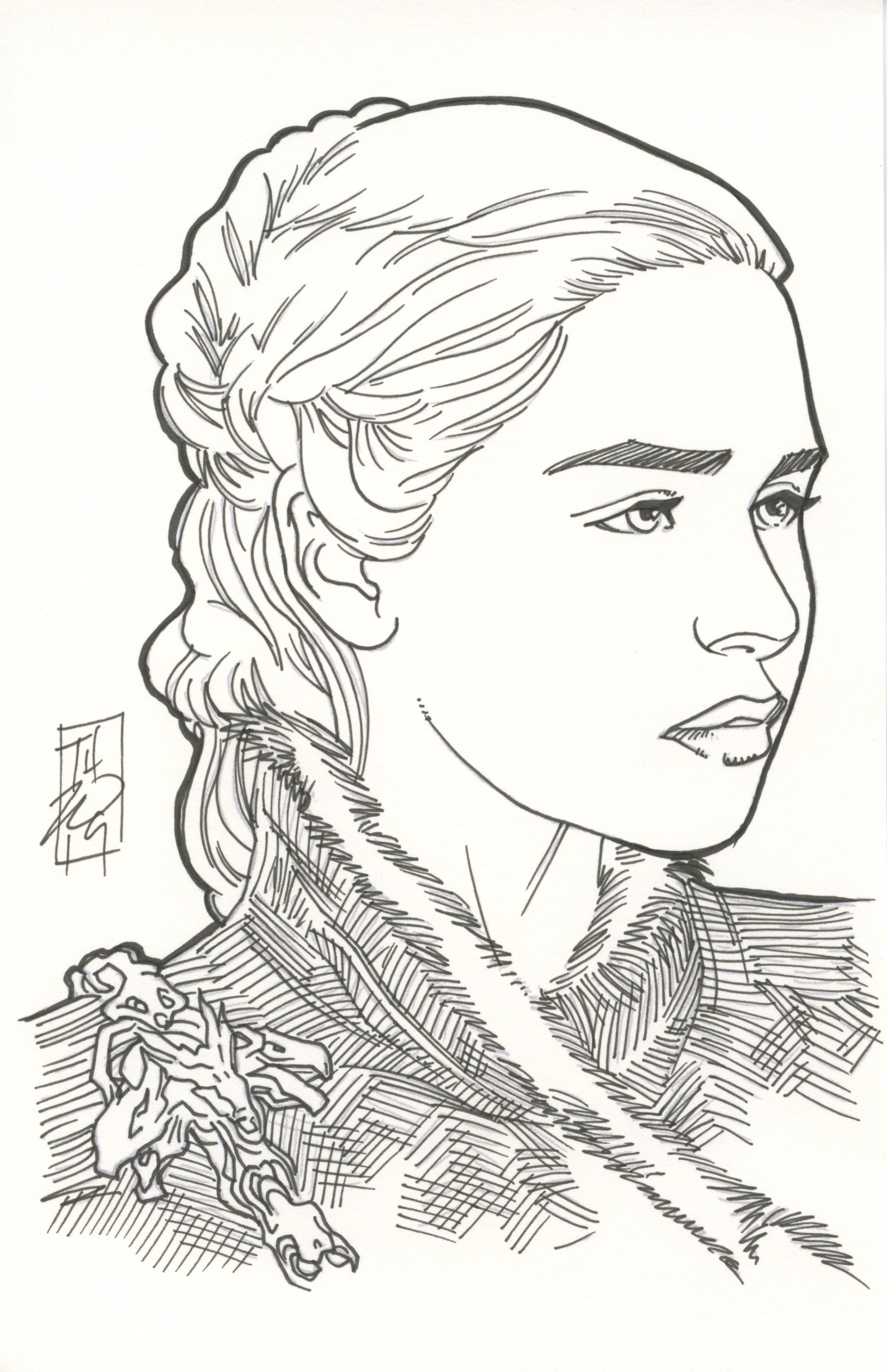 Tom Hodges - Daenerys Targaryen - Game of Thrones - Signed ORIGINAL 5.5" x 8.5" Drawing on Paper (1/1)