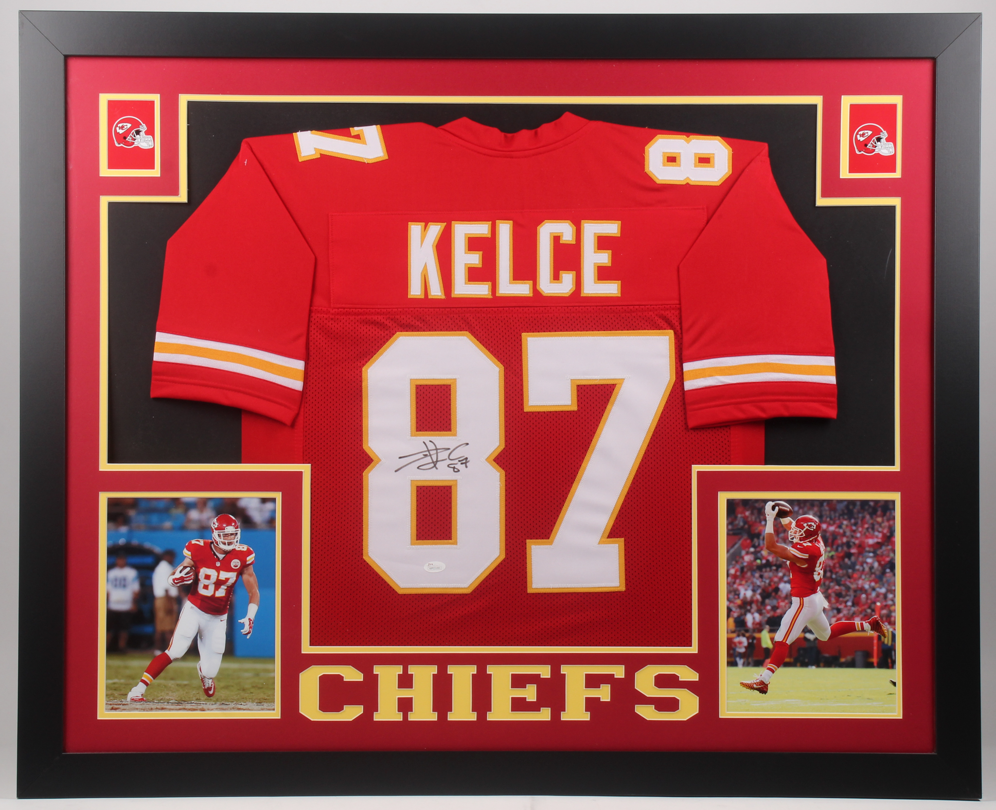 Travis Kelce Signed 35.5x43.5 Custom Framed Jersey (JSA COA)