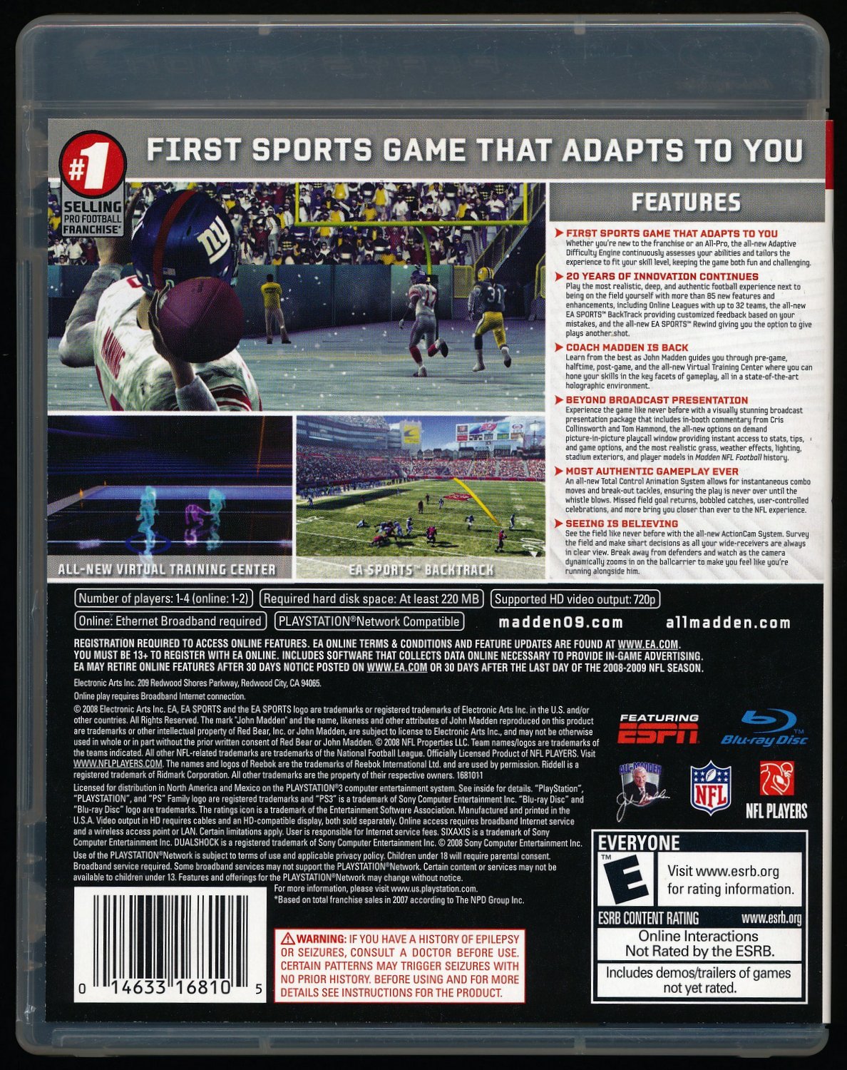 Brett Favre Signed "Madden NFL 09" Play Station 3 Game (Favre COA)