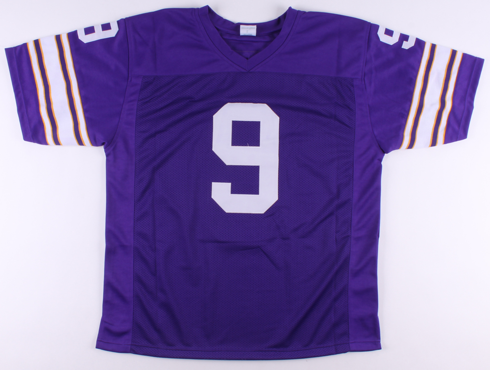 Custom on-field style jersey. Everything is sewn on, size XL. Hand-signed and inscribed in black felt-tip pen by Tommy Kramer.
