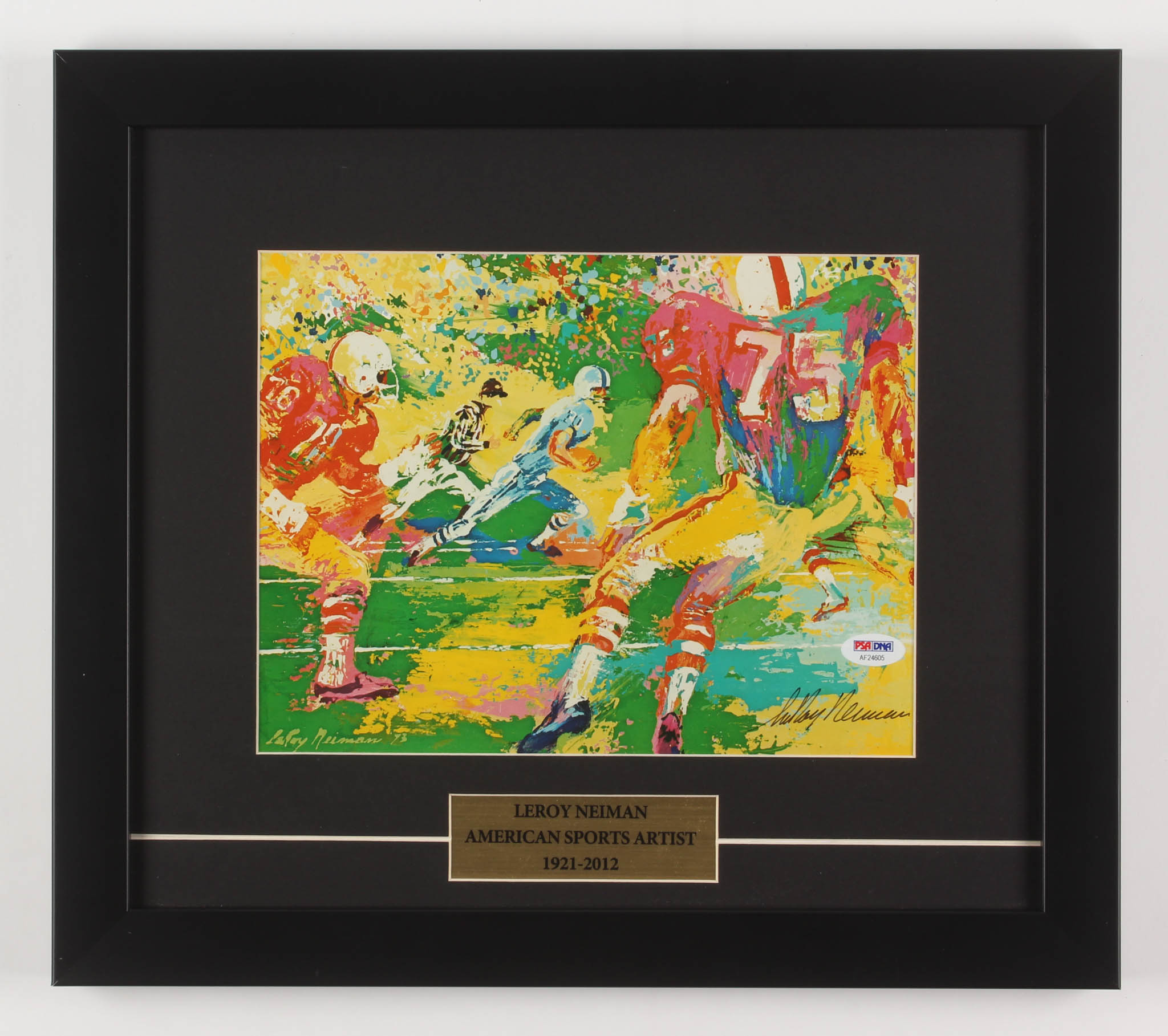 Custom frame measures 14.5" x 16.5" in size and features a print that has been hand-signed in black felt-tip pen by LeRoy Neiman (D. 2012).