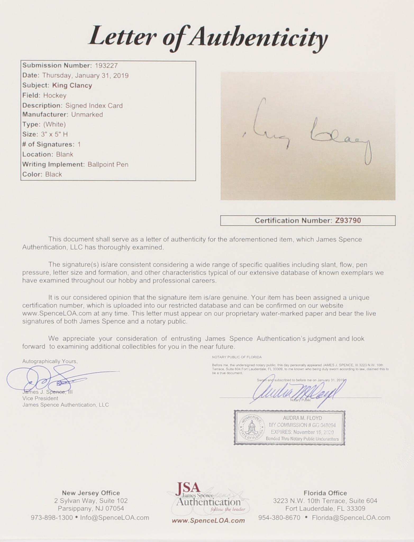 The lot / autograph(s) includes an official James Spence Authentication (JSA) hologram and matching LOA for authenticity purposes.