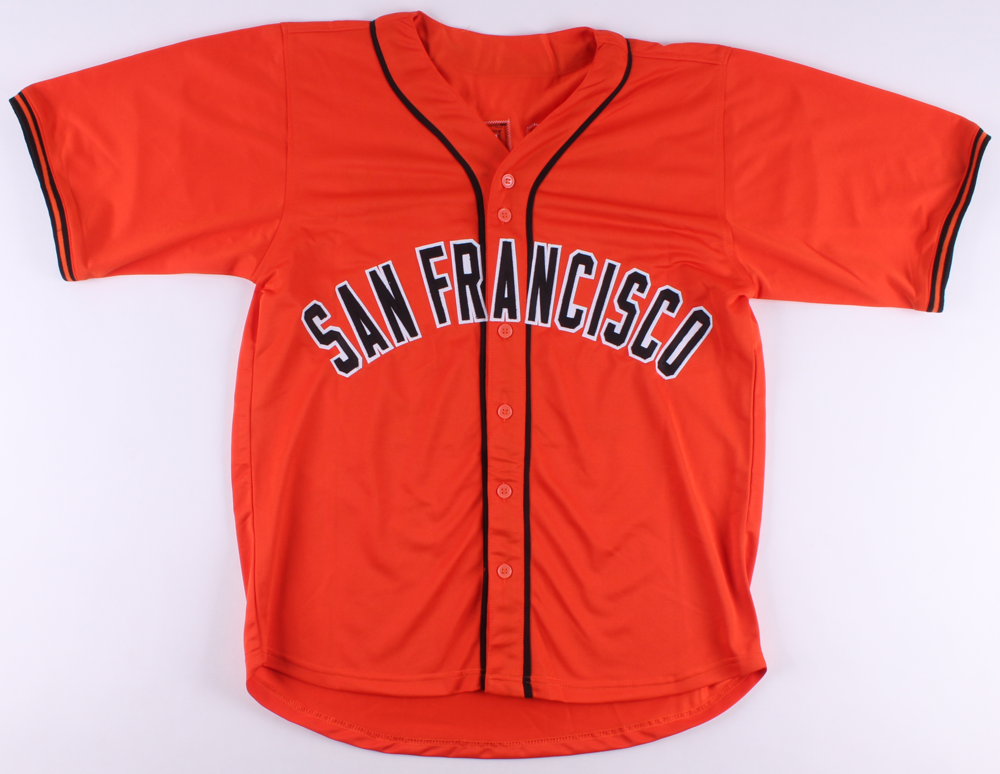 Custom on-field style jersey. Everything is sewn on, size XL. Hand-signed in silver paint pen by Tim Lincecum.