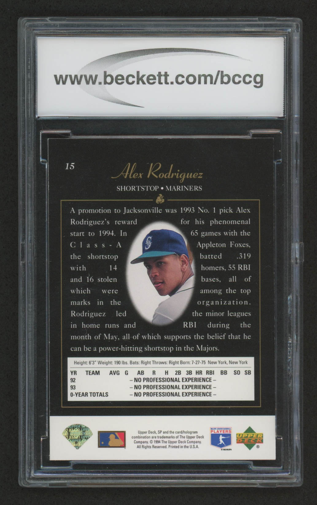 1994 SP #15 Alex Rodriguez FOIL RC (BCCG 10)