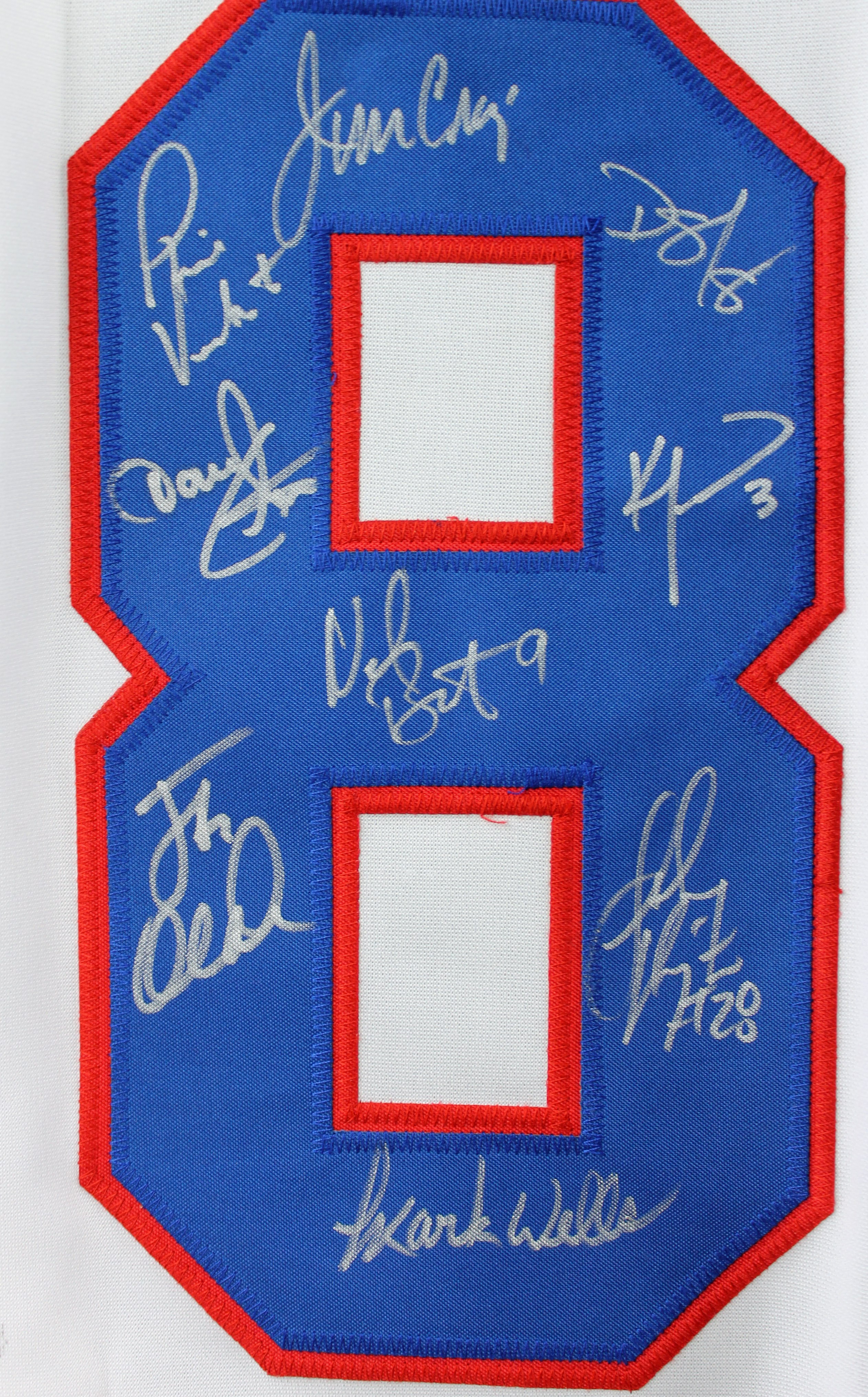 Jersey Team-Signed by (17) with Jim Craig, Mike Eruzione, Ken Morrow (JSA COA)