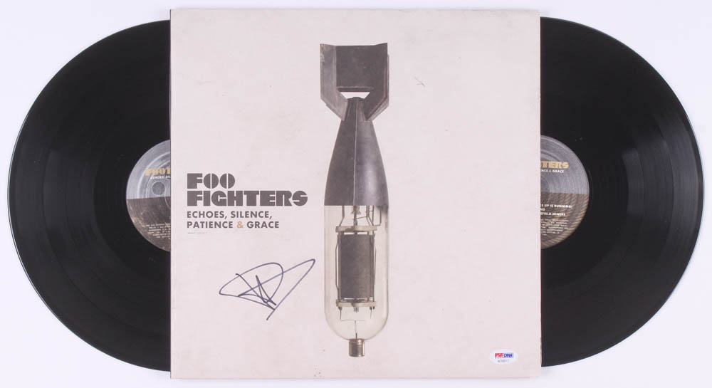 "Echoes, Silence, Patience & Grace" vinyl record album cover has been hand-signed in black felt-tip pen by Dave Grohl. Please note, both of the vinyl records are included.