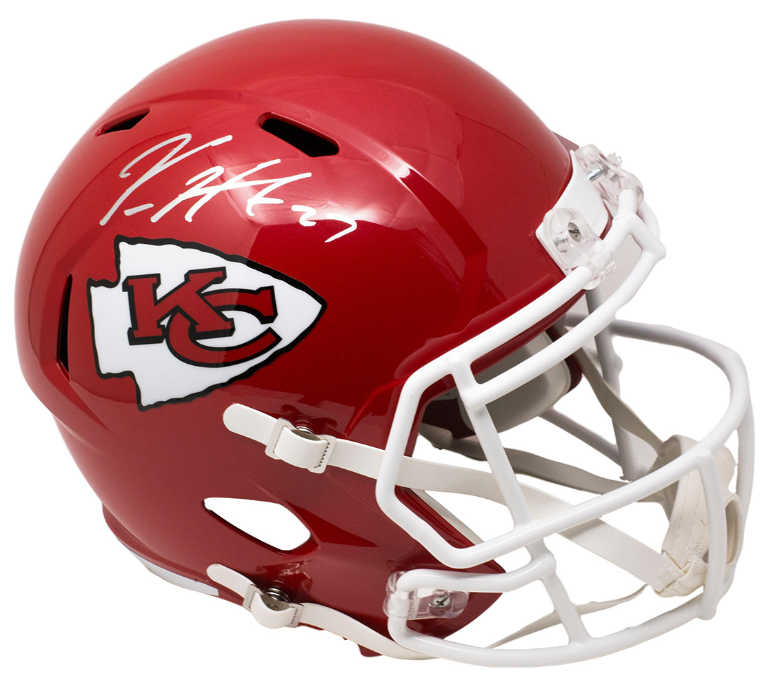 Riddell Kansas City Chiefs full-size replica speed helmet. Hand-signed in white paint pen by Kareem Hunt.