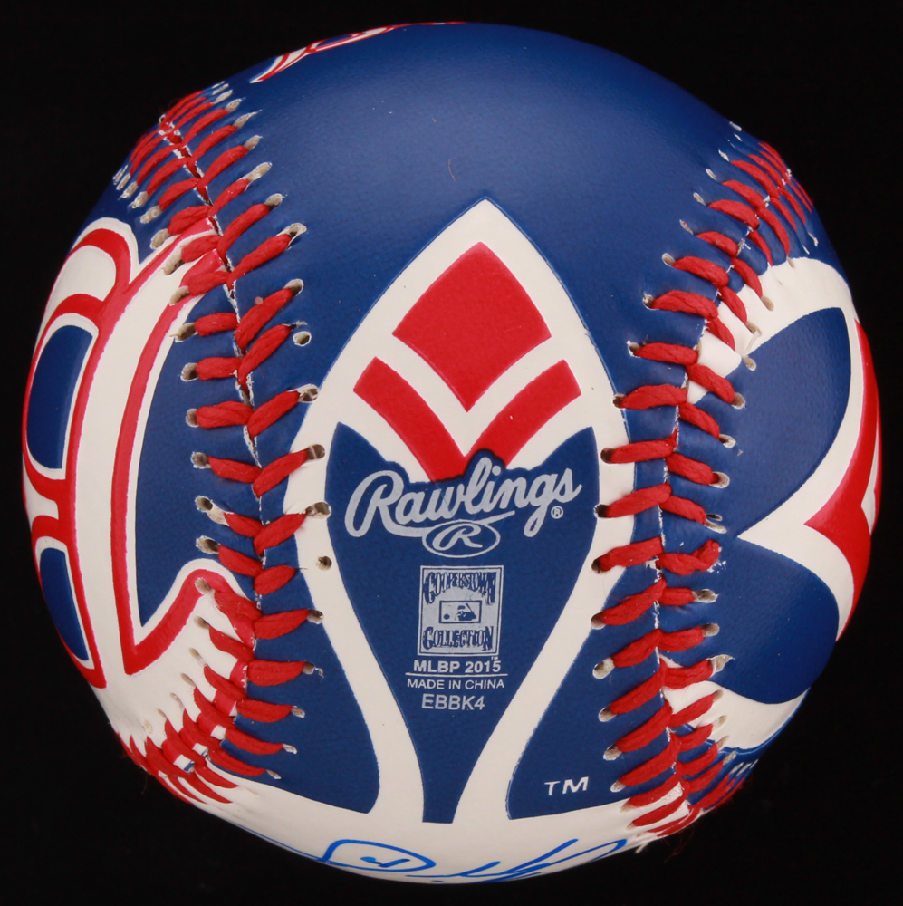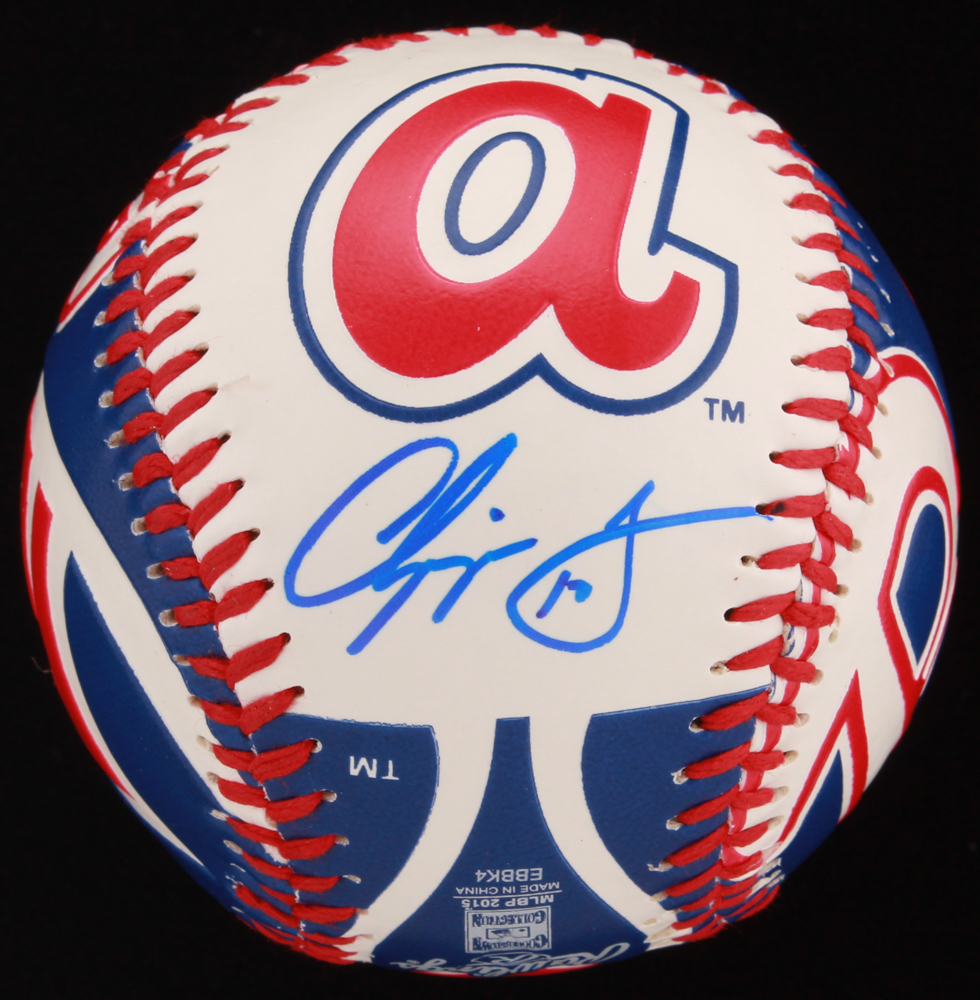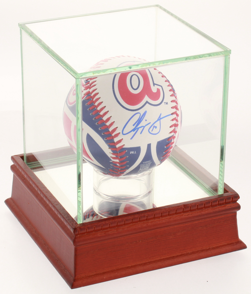 Official Rawlings Cooperstown CollectionBraves logo baseball hand-signedgo in blue ink pen by Chipper Jones (HOF). Baseball includes the display case shown.