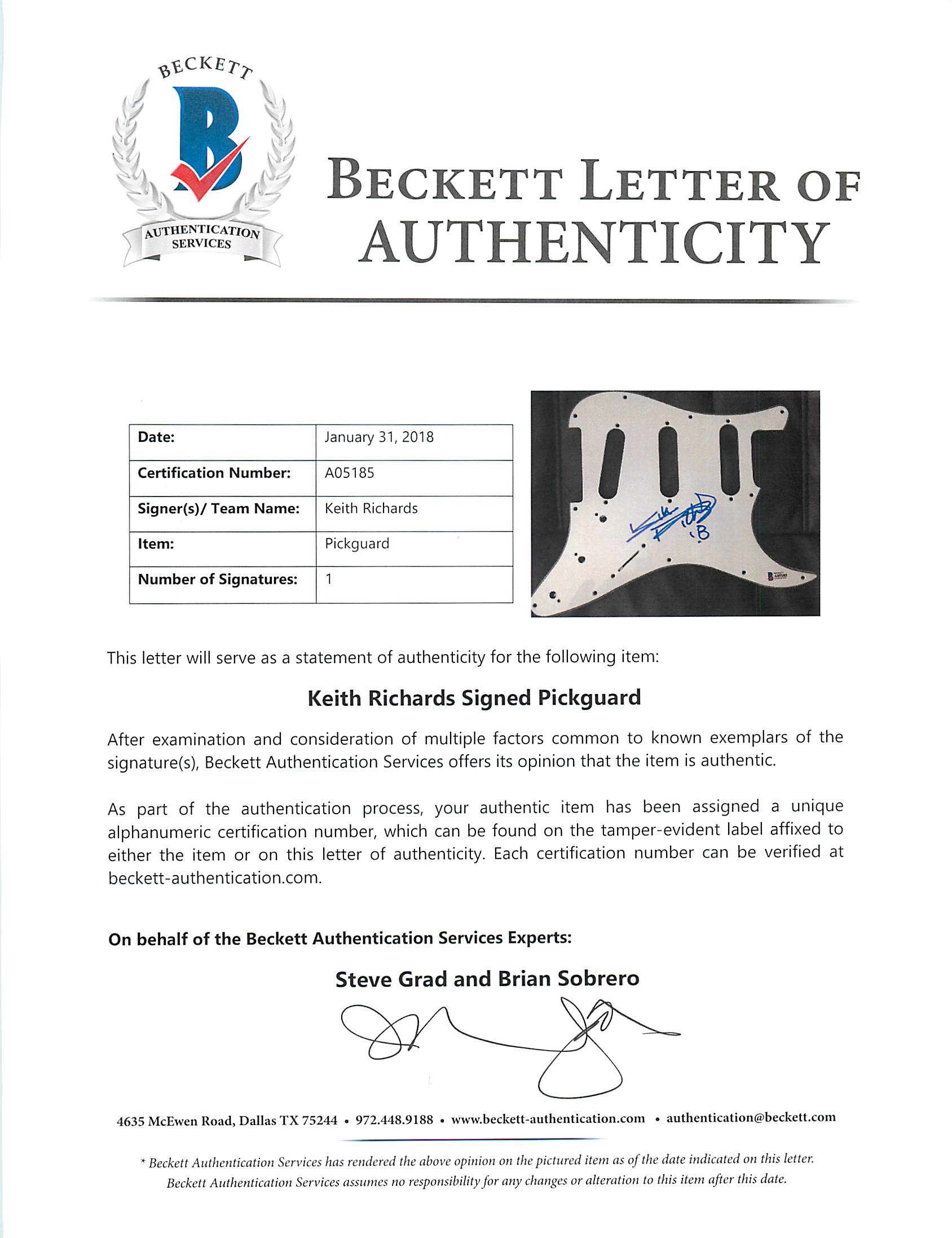 Keith Richards Signed 38" Huntington Electric Guitar Inscribed "18" (Beckett LOA)